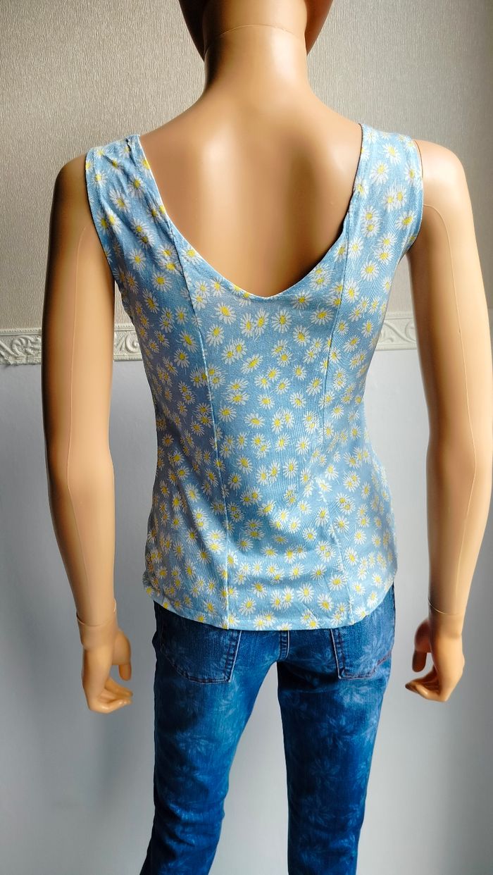 Débardeur fleuri vintage fait main bleu ciel/ blanc T38 H* - photo numéro 4