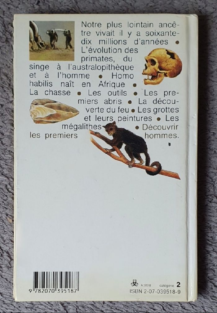 Descriptif : Il y a près de trois millions d'années, les Premiers Hommes sont apparus sur la Terre. Au cours de leur évolution, ils inventeront le feu, fabriqueront des outils et des armes, pratiqueront le culte des morts et créeront des œuvres d'art. Récits et dessins recréent le temps de la Préhistoire pour ajouter au plaisir d'apprendre celui de rêver.. Date de parution : 01/11/1984. Auteur : Pierre Gouletquer. Illustrateur : Carlo Ranzi. Collection : Découverte Cadet N°18. Éditions : Gallimard Jeunesse. Dimensions du livre : 18×11.4×1.1Cm. =) 96 pages. En très bon état général! Juste de très légères traces d'usage sur couverture (à peine visibles). L'intérieur du livre est nickel.