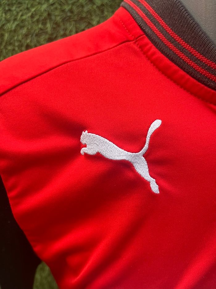 Bonjour Maillot alessandrini Stade Rennais Occasion Pour homme Taille M Marque puma Saison 2012/2013 Authentique Le maillot est en bon état Un mini trou est présent mais réparer proprement Des taches sont présentes près des lettres du flocage joueur L’avant est en très bon état Logos brodés sur la poitrine et sponsor Flocage joueur au dos en très bon état également Maillot domicile des rennais pour la saison 2012/2013