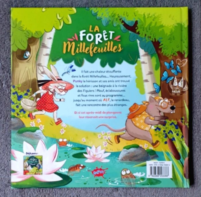 Résumé : Il fait une chaleur étouffante dans la Forêt Millefeuilles... Heureusement, Punky le Hérisson et ses amis ont trouvé la solution : Une baignade à la rivière des Figuiers! Plouf, éclaboussures et fous rires sont au programme... Jusqu'au moment où Alf, le Renardeau, fait une rencontre des plus étranges. Et si cet après-midi de plongeons leur réservait une surprise.. Date de parution : 22/05/2025. Auteur : Olivier Dupin. Illustratrice : Nathalie Janer. Collection : La Forêt Millefeuilles. Éditions : Splash! Dimensions du livre : 21,3x21,3x1Cm. =) 40 pages. Montant d'achat magasin : 8.95E. État neuf.