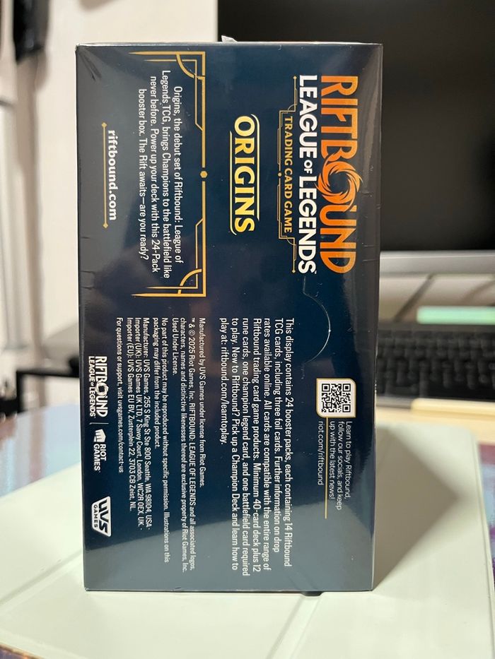 Bonjour. 👋 [LE PRIX EST FIXE NON NEGO] Plusieurs de dispo Je vends cette display scellé Riftbound Origins en Anglais J'emballe avec du papier bulle + boite en carton Je filme la préparation pour éviter toute sorte d'arnaque Expédition rapide Retour non accepter