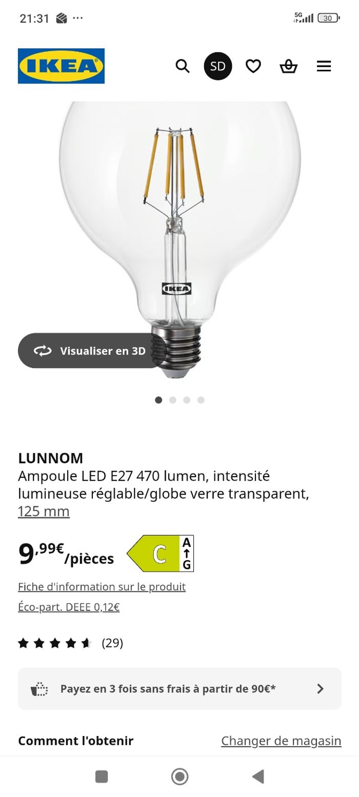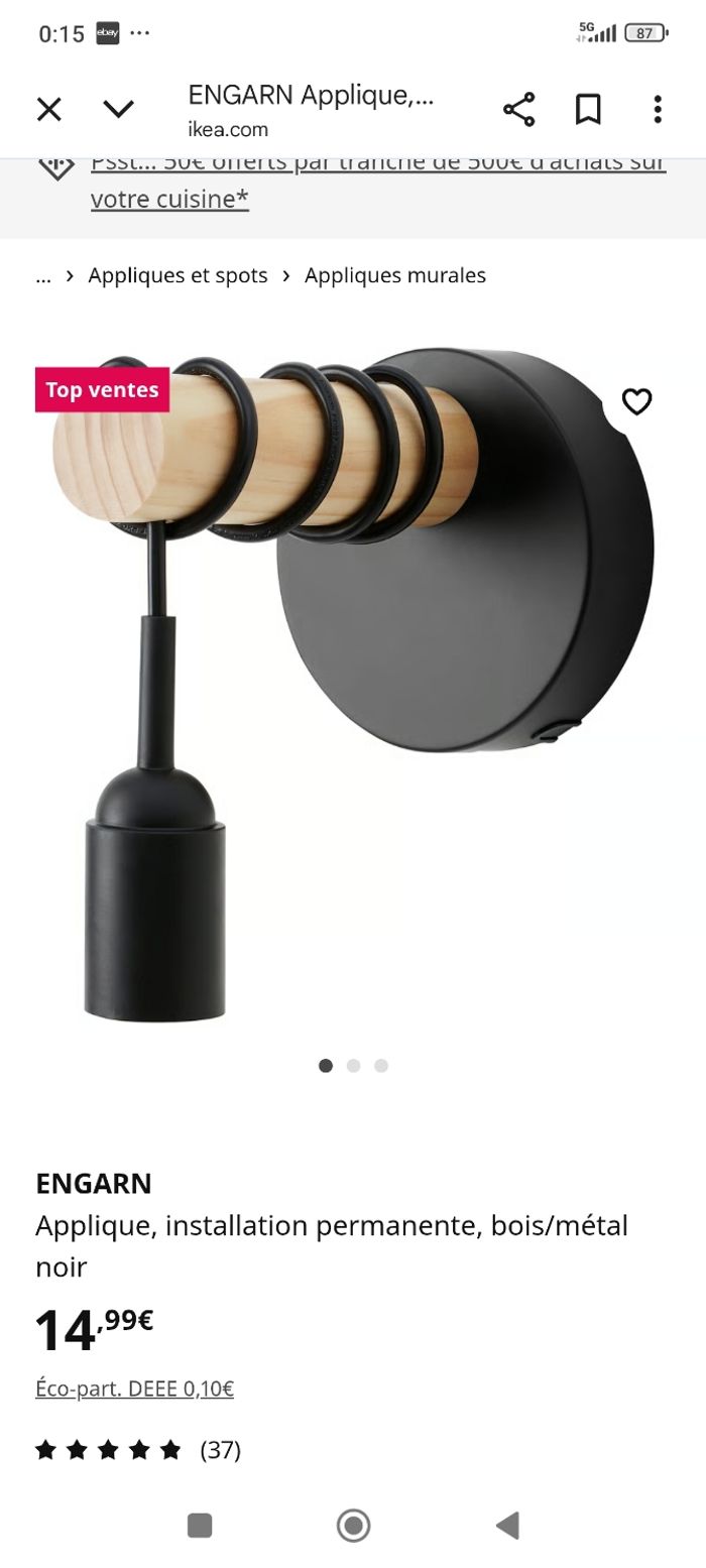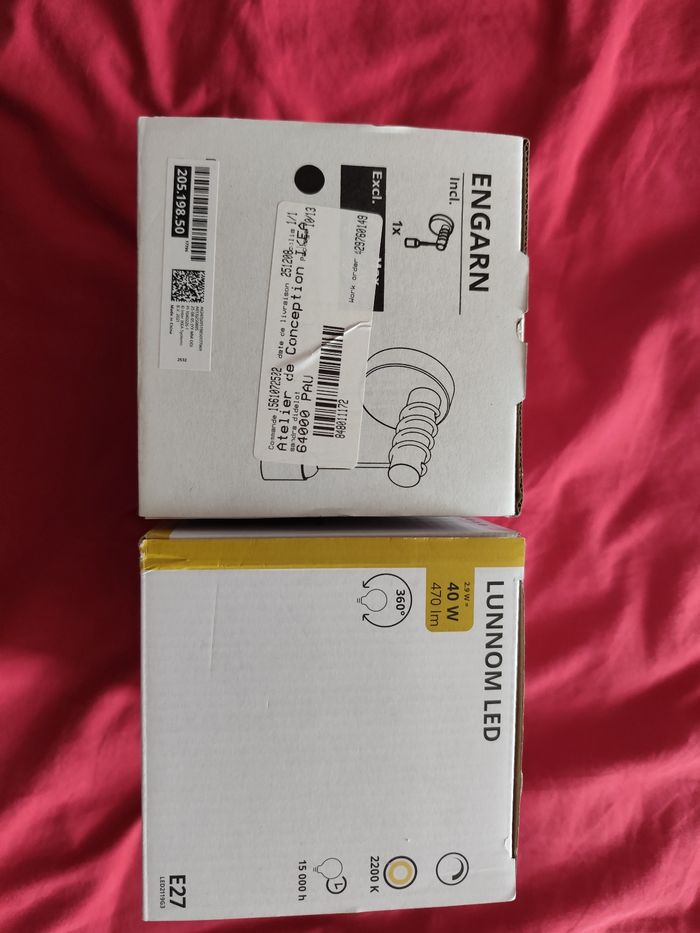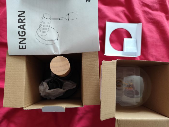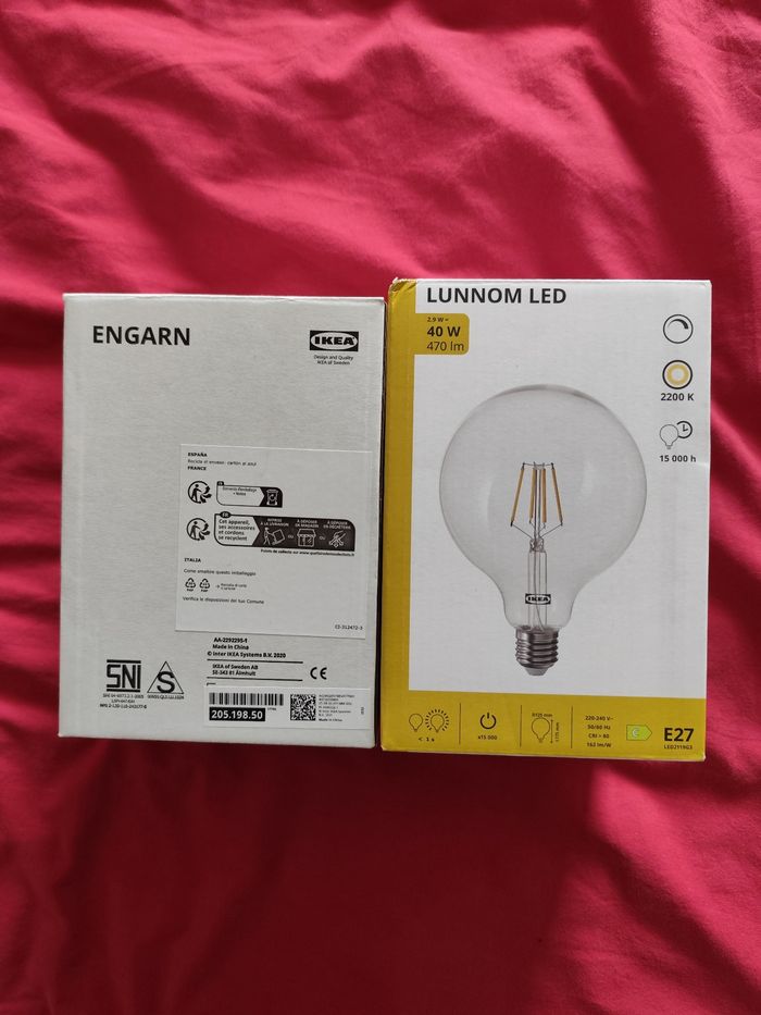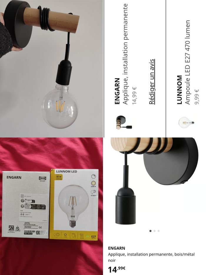 Applique murale engarn en bois et métal noir avec ampoule lunnom led filament diametre 125 40w. . Acheté chez Ikea jamais utilisé. Articles neufs dans leur emballage d'origine. Facture et capture d'écran du site sur demande . Acheté 15€ pour le luminaire et 10€ pour l ampoule. #engarn #lunnom #lunnomled #appliquemuralebois