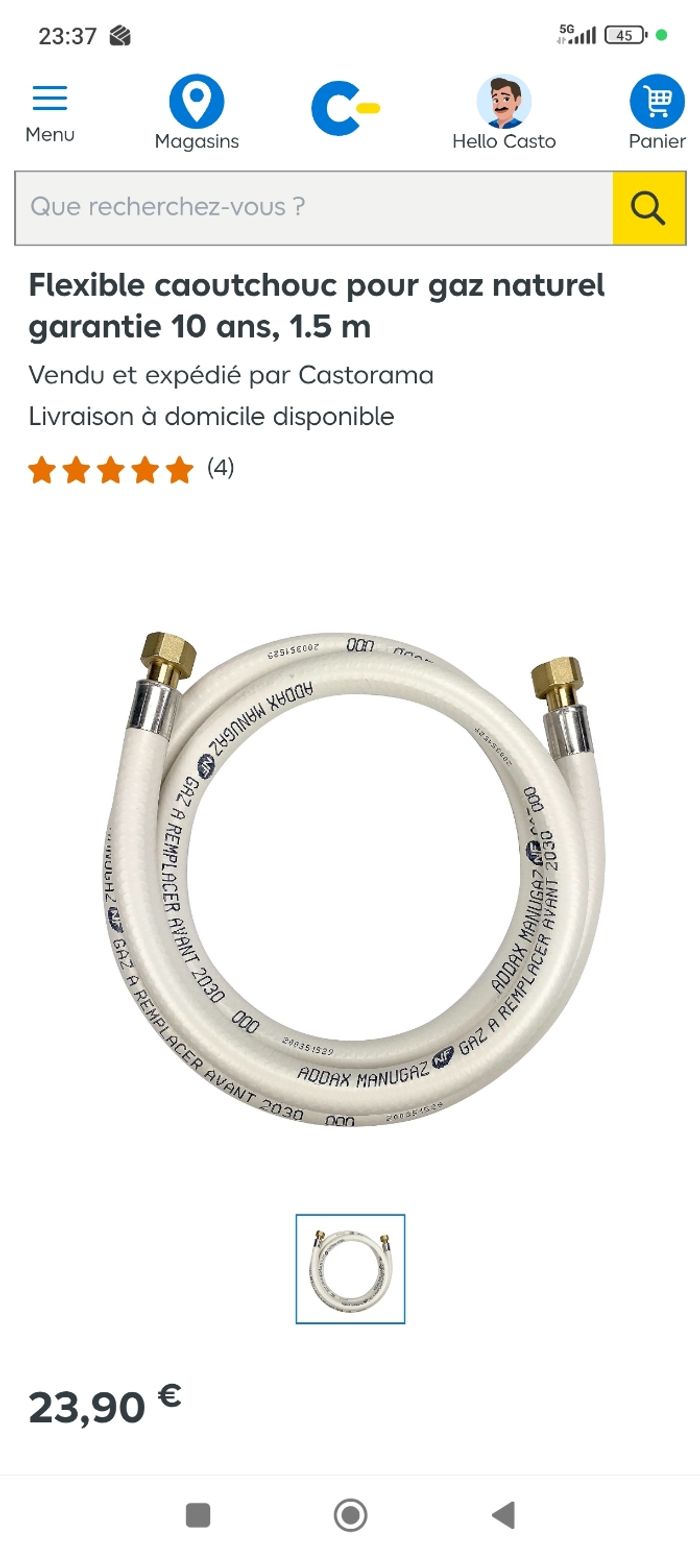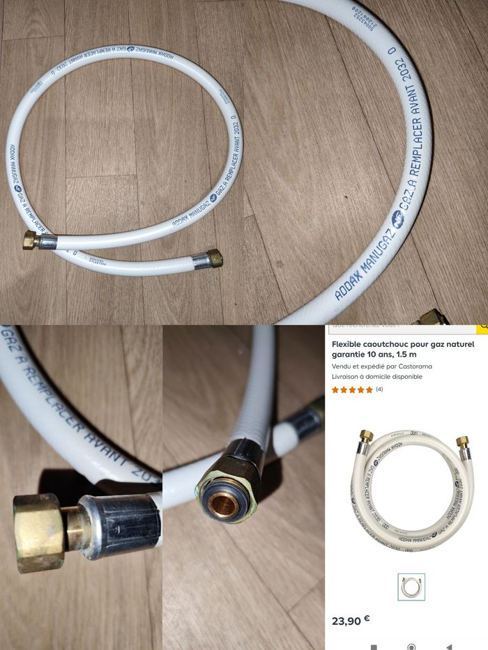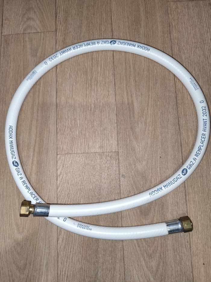 tuyau flexible en caoutchouc pour gaz naturel de ville, d'une longueur de 1,5 m. marque addax manugaz NF valable jusqu en 2032. Acheté chez Castorama Valeur 23.90€ .voir capture d'écran. Je le vends suite à changement de cuisine. #tuyaugaznaturel #gazdeville #gaznaturel #tuyaugaziniere #flexiblegaz