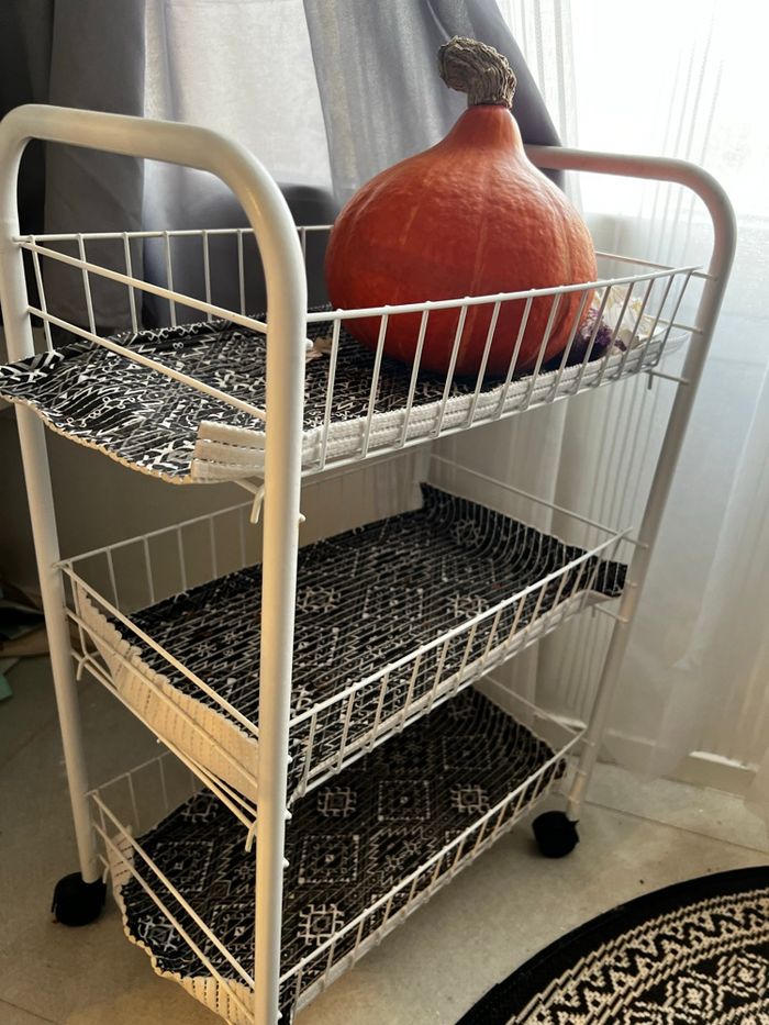 Desserte à roulettes en très bon état pour des légumes des produits cosmétiques ou même les fournitures scolaires dans la chambre d’enfant Doit partir rapidement pour cause de déménagement