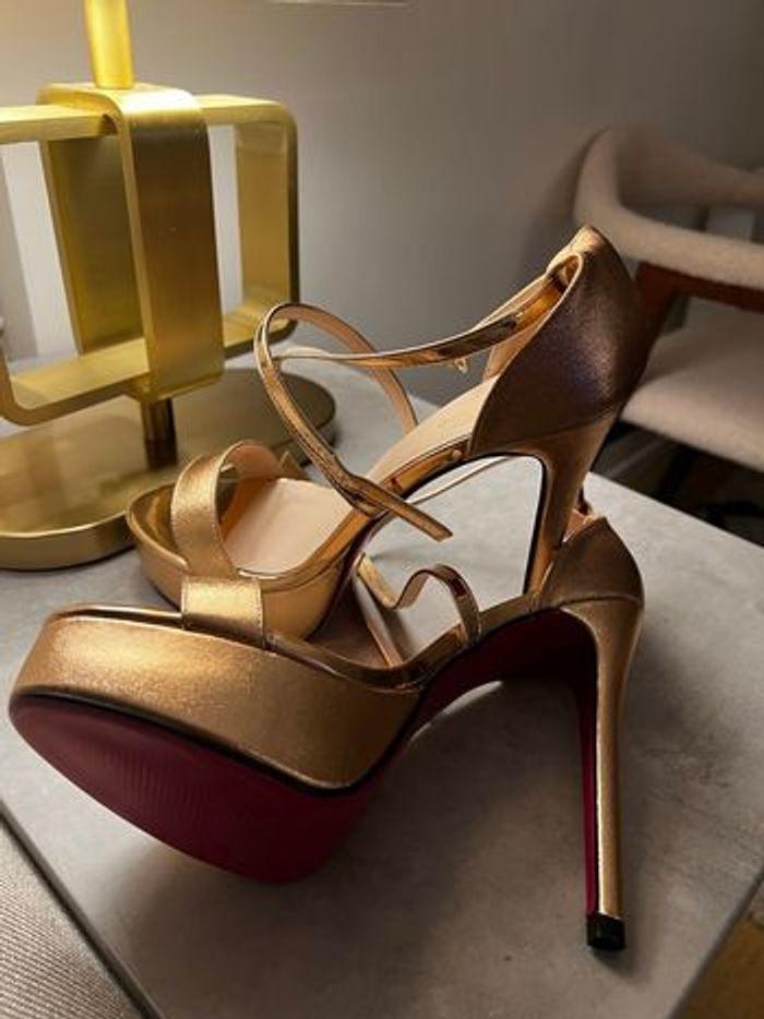 - Sandales neuves, jamais portées (petites pour moi) - Couleur élégante rose gold avec semelle rose fuchsia, très tendance. -Talon très haut mais confortable –idéal pour sublimer la silhouette /Idéales pour soirée, cérémonie, fête. Pointure : 39 Envoi rapide