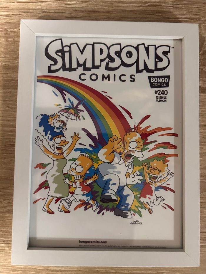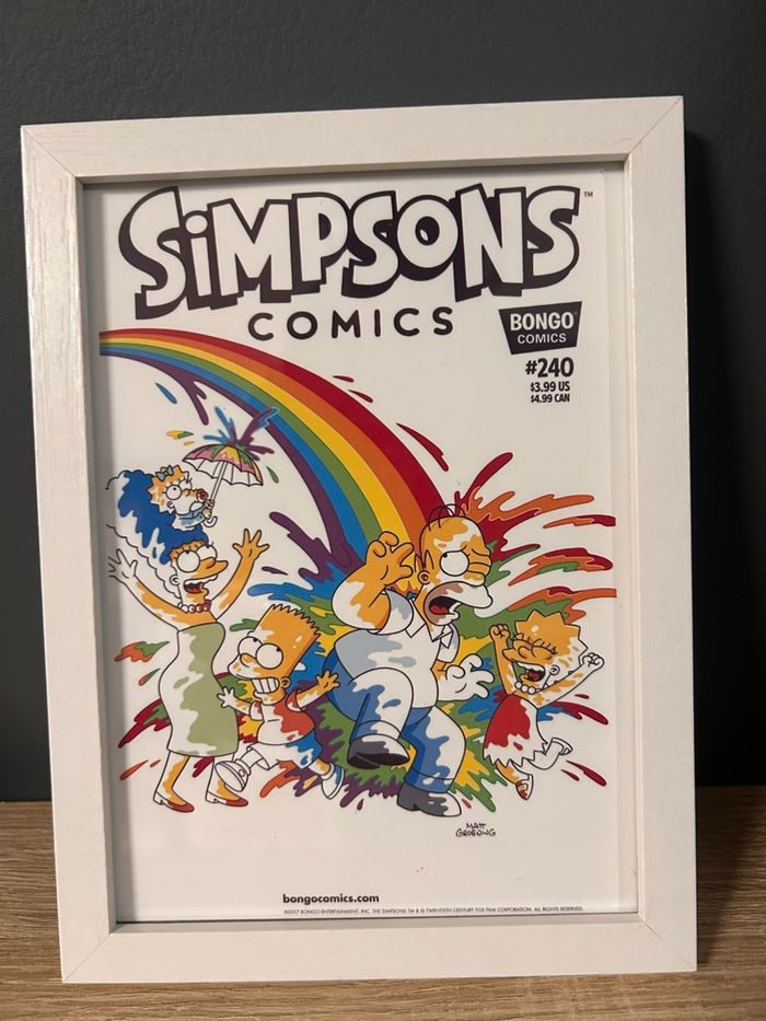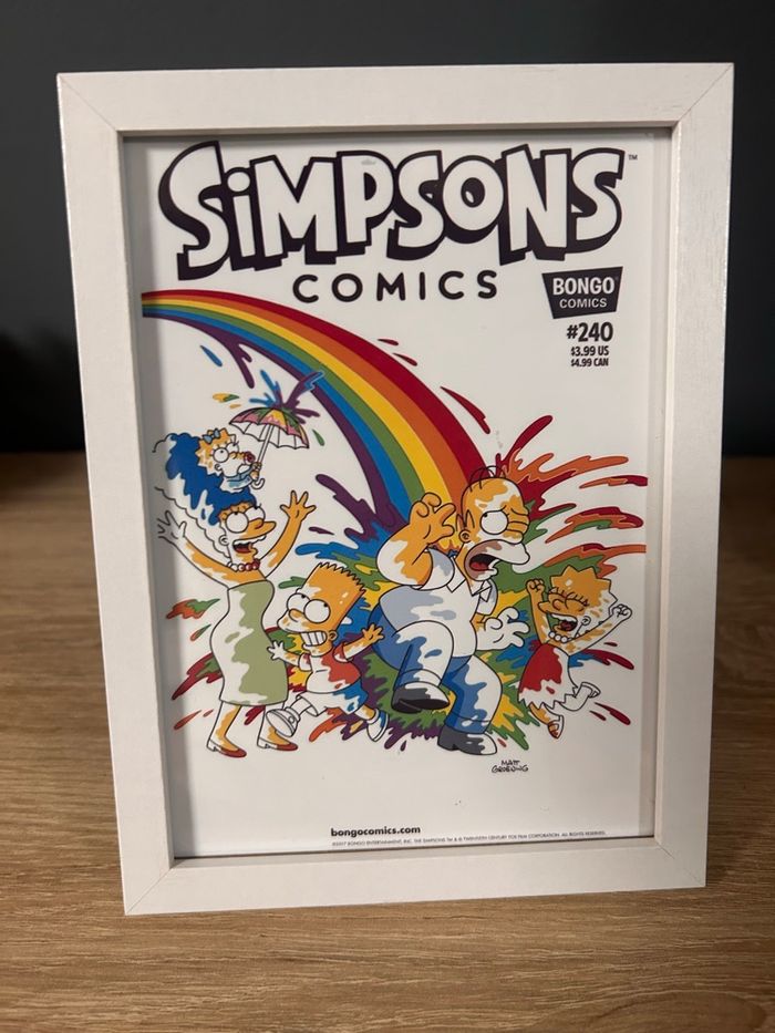 Cadre décoratif The Simpsons – Comics #240 (édition Bongo Comics), idéal pour une déco pop culture, geek ou comics. 🟦 Détails : • Cadre en bois blanc • Format image : 13 x 18 cm • Visuel coloré et iconique (famille Simpson – style comics) • Impression nette, protégée sous vitre • Prêt à être accroché ou posé 🎨 Parfait pour : • Salon, bureau, chambre • Fan des Simpsons • Déco geek / pop culture / comics 📦 État : neuf 📬 Envoi soigné ou remise en main propre possible 💬 N’hésite pas à me contacter pour toute question