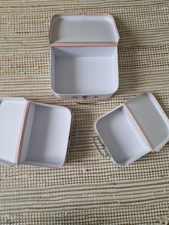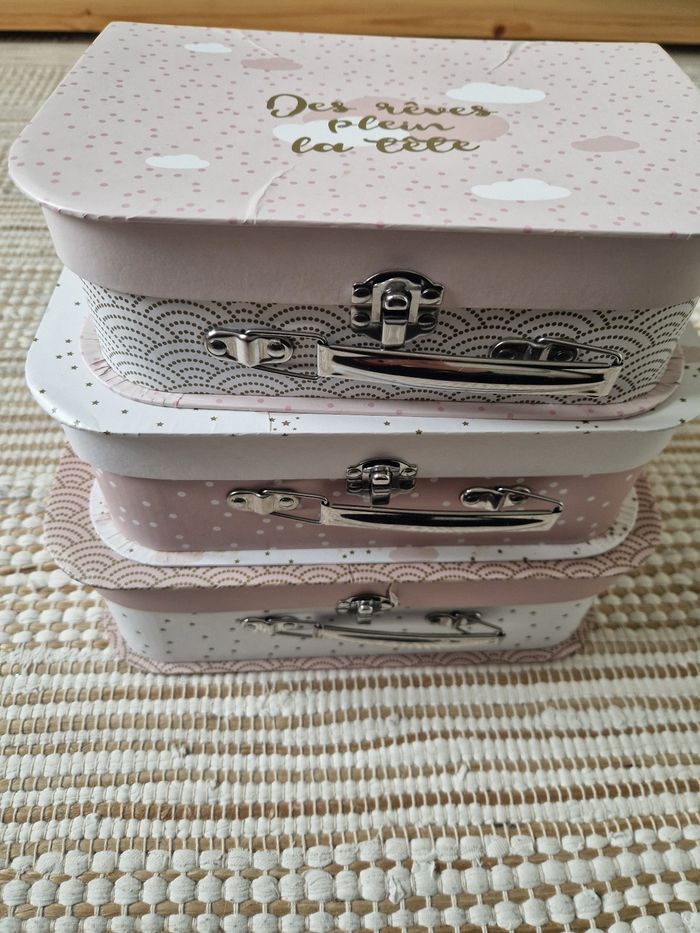 Ce set de 3 valisettes se compose de modèles de tailles différentes que l'on peut empiler ou disposer séparément. Les imprimés et les détails varient sur chaque valisette mais restent parfaitement assortis les uns aux autres. État d usage, abîmé ( Voir photos) N hésitez pas à voir mes autres articles car je fais du vide dans mes placards 🌸