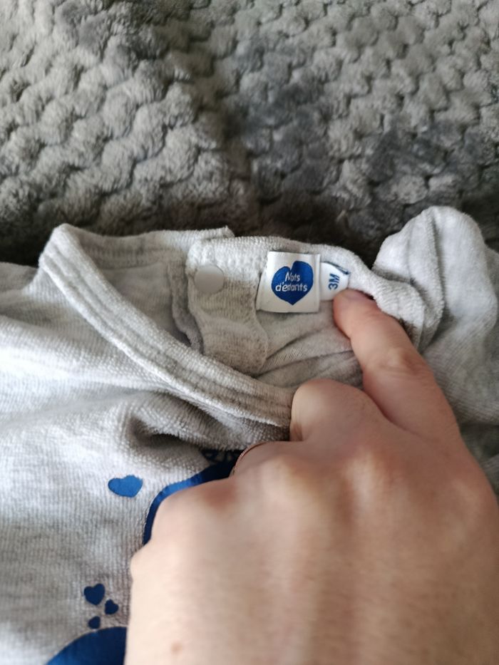 Je vends ce pyjama en très bon état taille 3 mois marque mots denfants