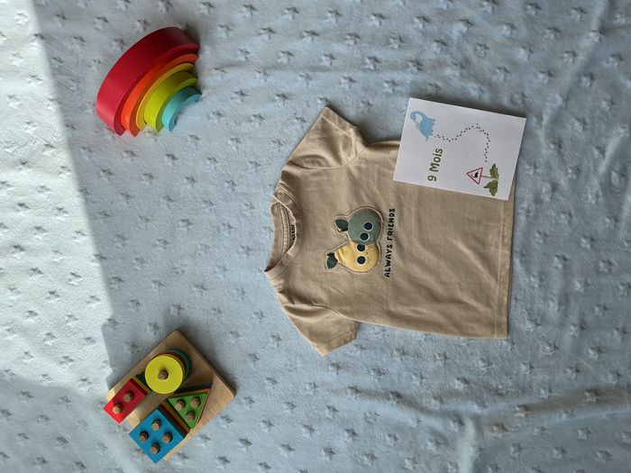 teeshirt manches courtes beige dessin devant 9 mois kiabi - photo numéro 7