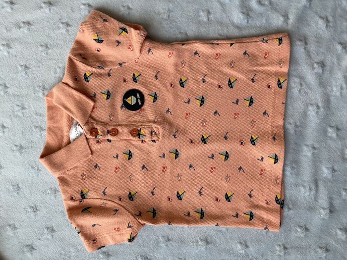 polo manches courtes abricot motifs plage 9 mois mes petits cailloux - photo numéro 1