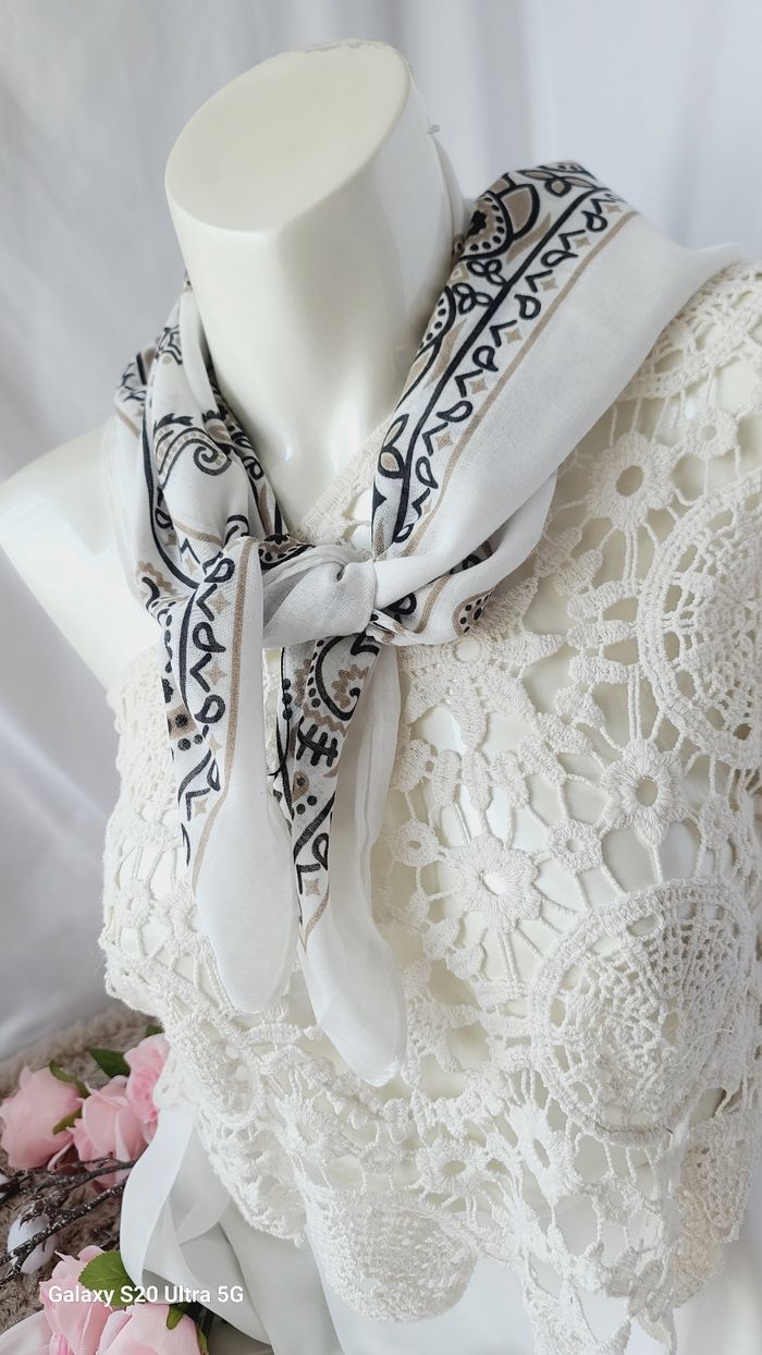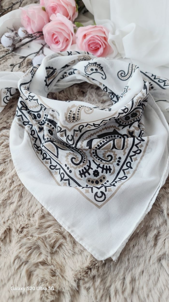 Carré bandana cheveux cou blanc  coton doux  - photo numéro 3