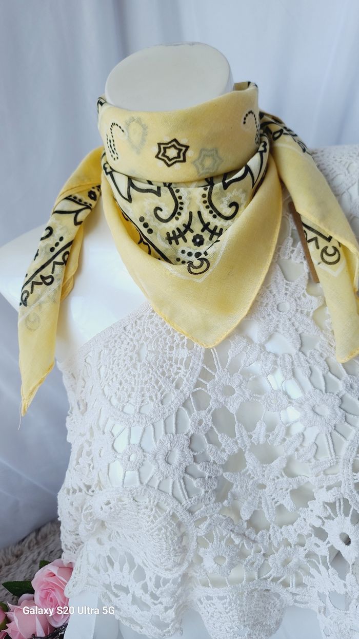 Bandana 70*70 coton doux cheveux cou jaune  - photo numéro 5