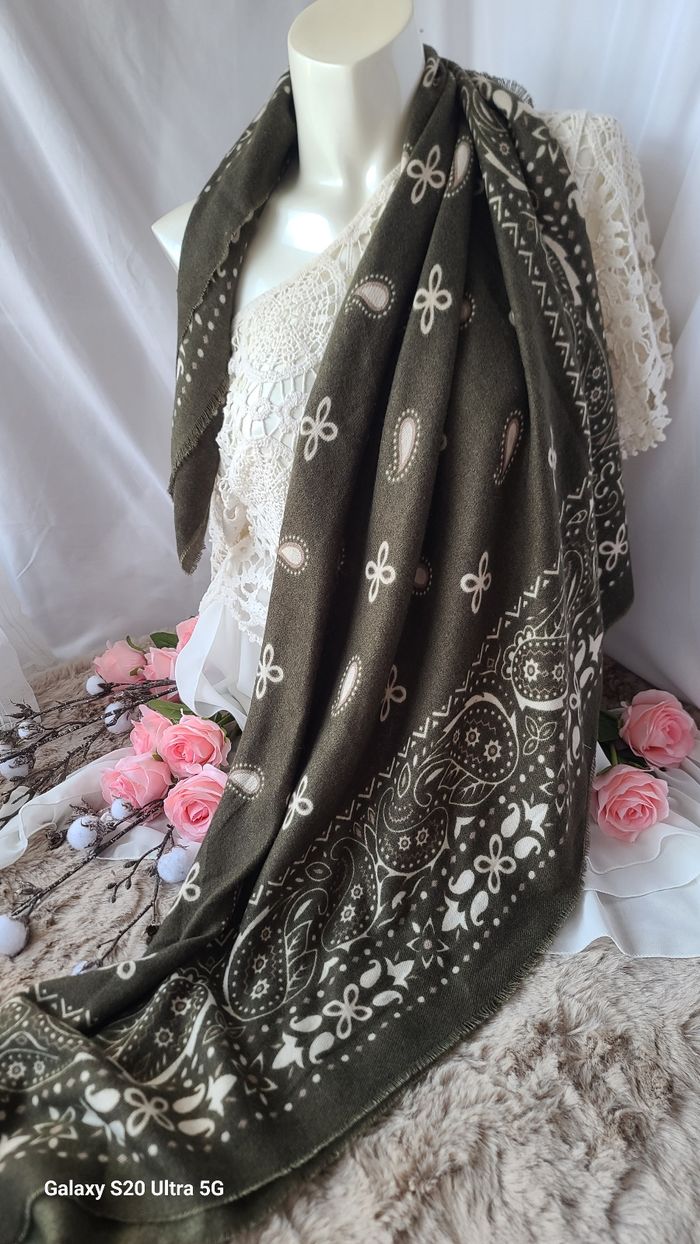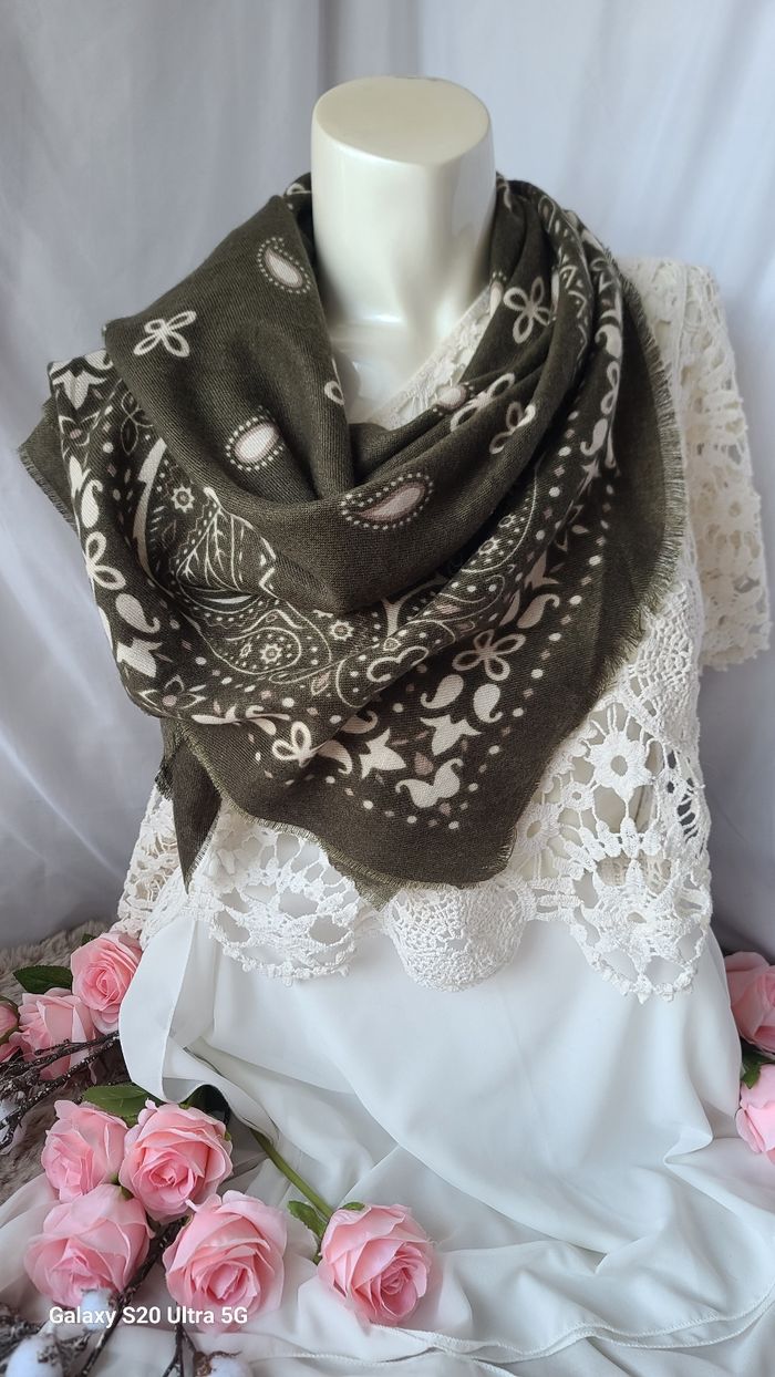 Echarpe style kujten laine douce kaki  - photo numéro 1