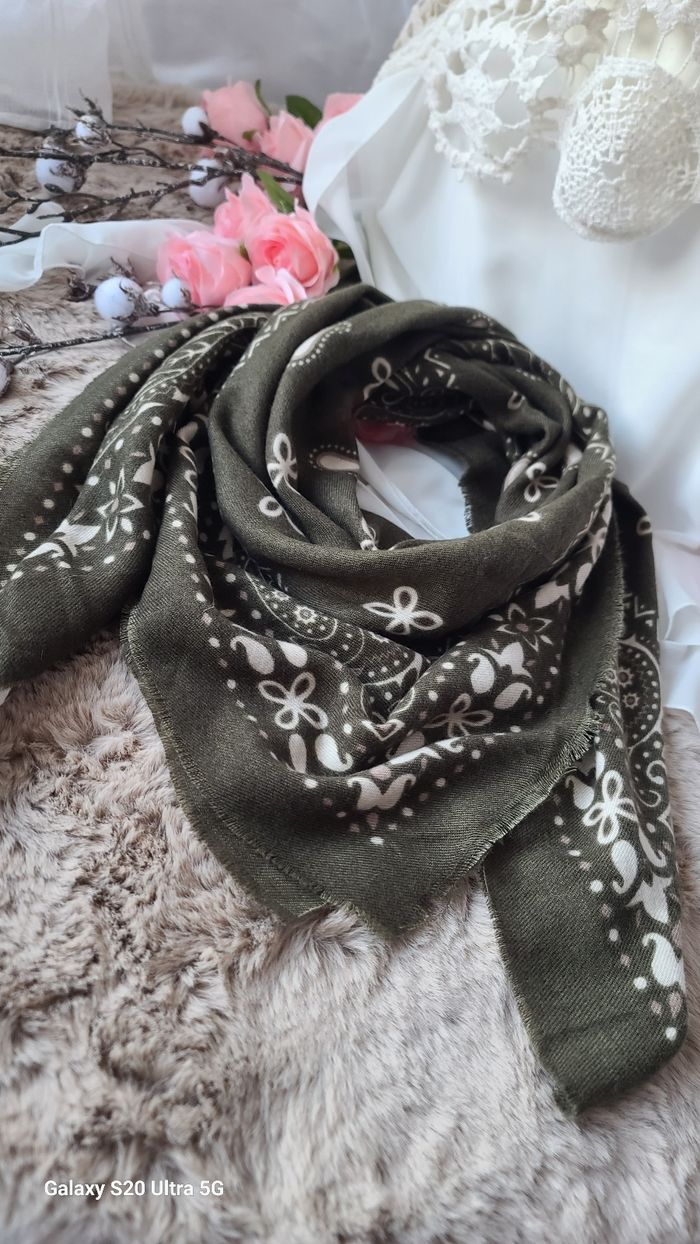 Echarpe style kujten laine douce kaki  - photo numéro 4