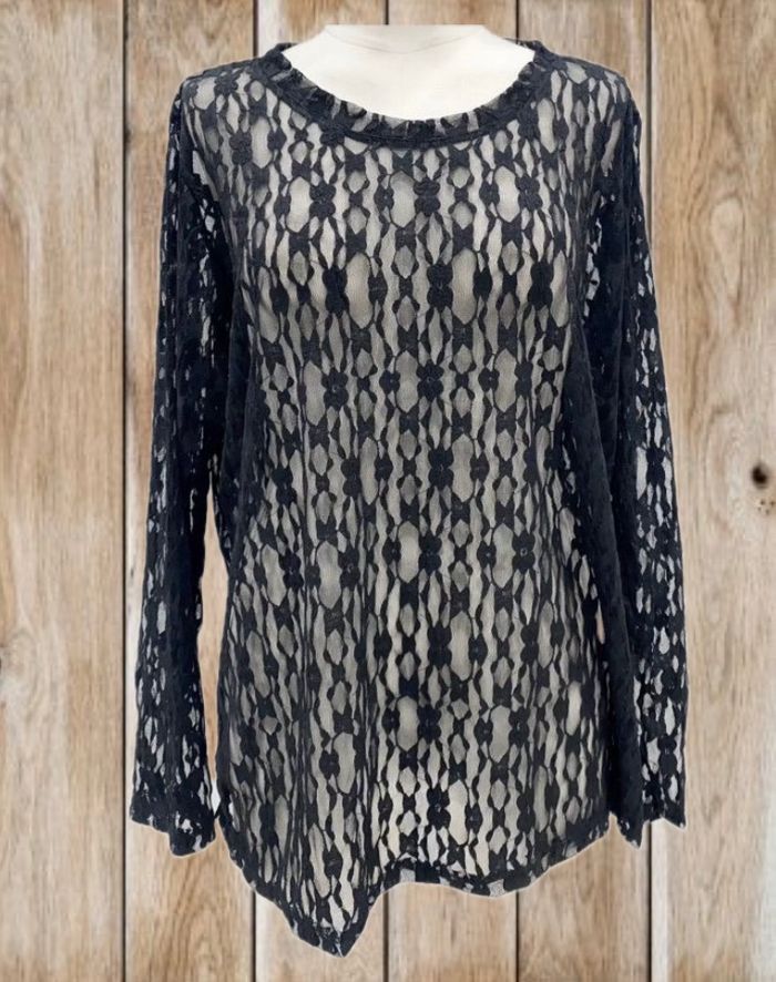 Top dentelle grande taille 60% nylon 40% viscose Aisselle à aisselle : 60cm Longueur : 73cm Merci de préciser le coloris souhaité lors de votre achat