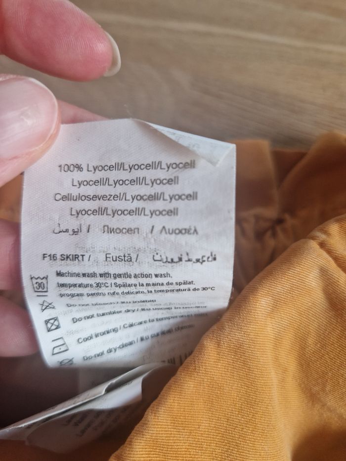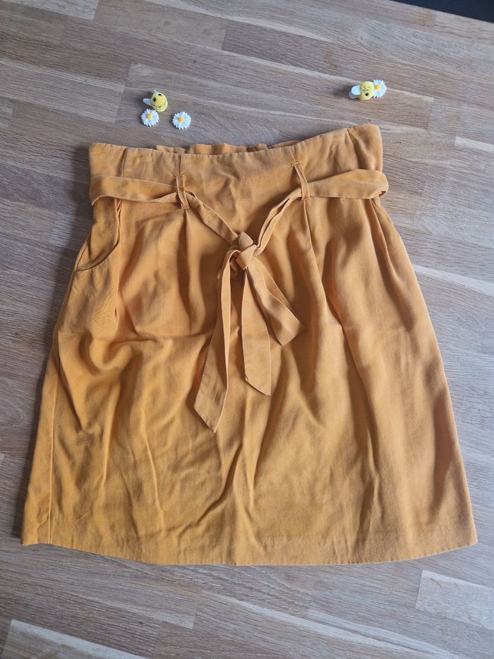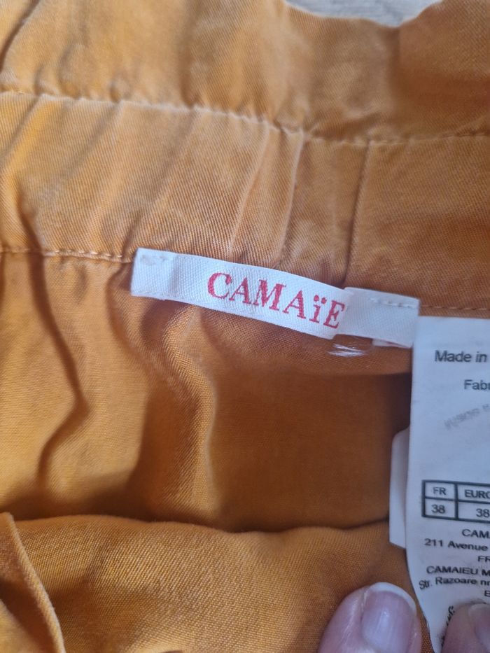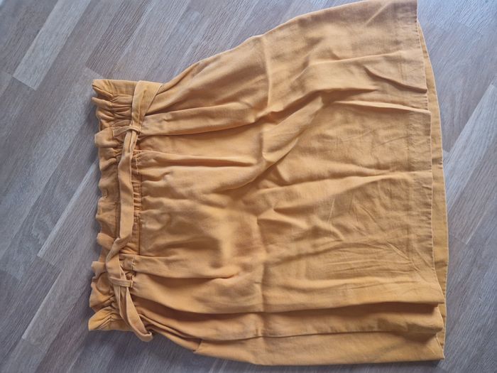 Jupe Camaïeu Taille 38 aspect suédine de couleur moutarde 1 passant se decoud cf photo Pas de tâches