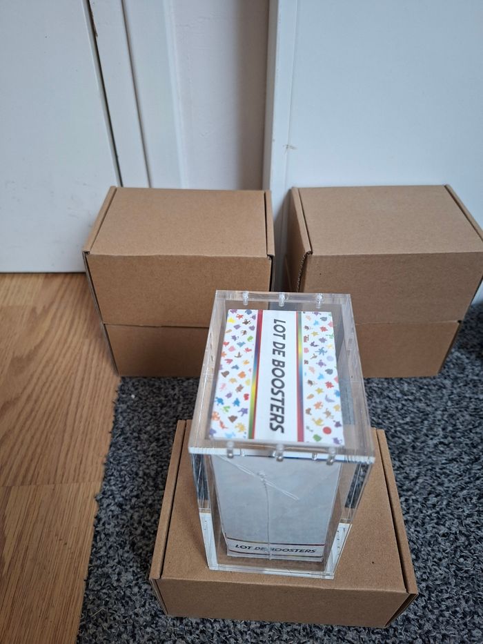 Bonjour , Je vend ce lot de 4 protections acrylique aimantée pour BUNDLE Pokémon . - 9.99€ pieces sois 39.99€ les 4 acryliques ! 😊 Protection (ÉPAISSE) aimantée à 6 points. -> PROTECTION UV -> PROTECTION ANTI CHOC ET HUMIDITÉ -> Ultra transparence (100%) pour sublimer votre collection Les acryliques sont chacune emballé dans leurs emballage d'origine ! S'adapte parfaitement pour les BUNDLE Pokémon, ne bougera pas ! 😊 N'hésitez pas a faire des offres de lot sur mon dressing. Je fait des belles réductions de lot 🔥 N'hésitez pas egalement a me contacter . Mercii