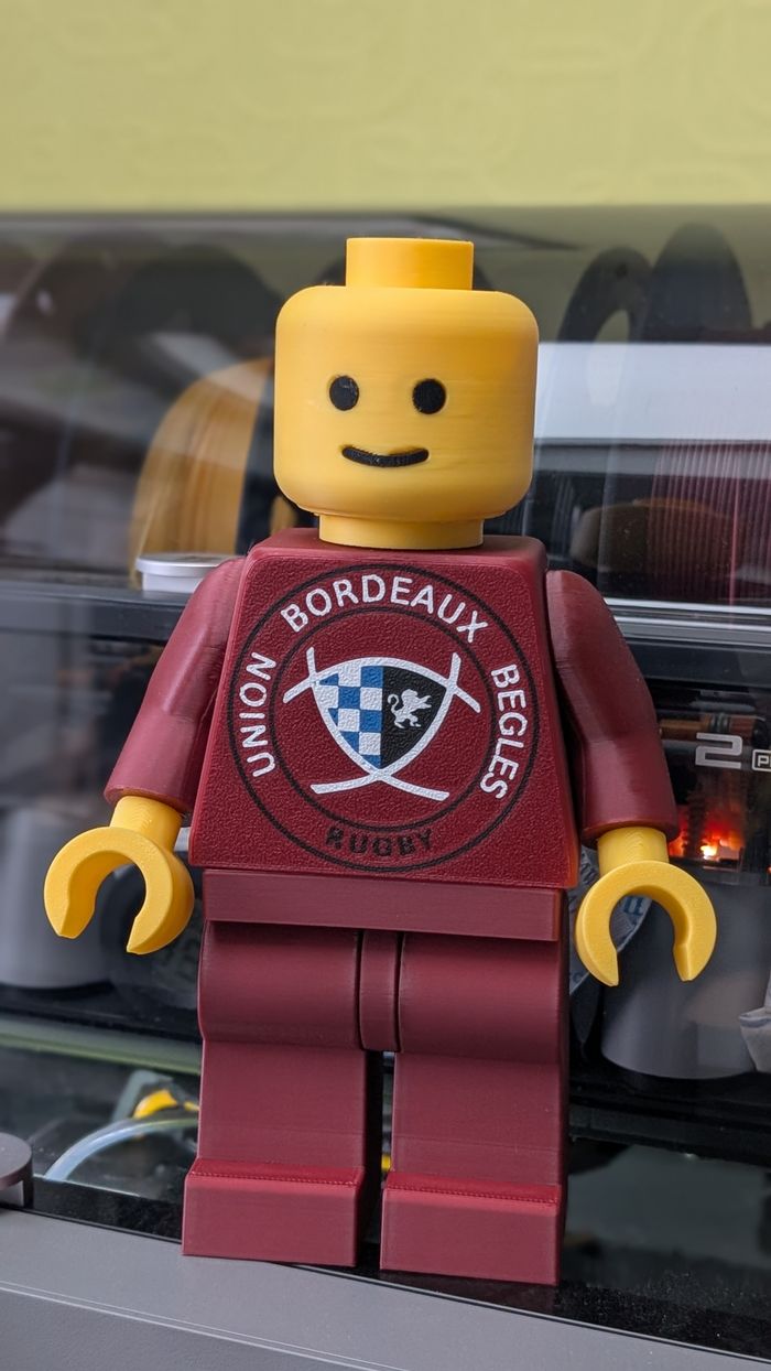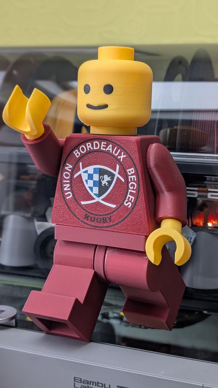 Figurine homme-brique façon Lego aux couleurs de Bordeaux Bègles, en format 20 cm. Le logo a été légèrement retravaillé pour des contraintes techniques d’impression, tout en restant fidèle à l’esprit du club. 🧱 Hauteur : 20 cm 🎨 Impression 3D propre et soignée (PLA) 👕 Design Bordeaux Bègles revisité 🖐️ Bras et mains articulés 🏷️ Fabrication Hinata3D Idéal pour : ➡️ Fans de l’UBB ➡️ Déco de bureau, salon ou vitrine ➡️ Collectionneurs de figurines type “homme-brique” 📦 Envoi possible 💬 Personnalisations disponibles sur demande (clubs, couleurs, etc.)