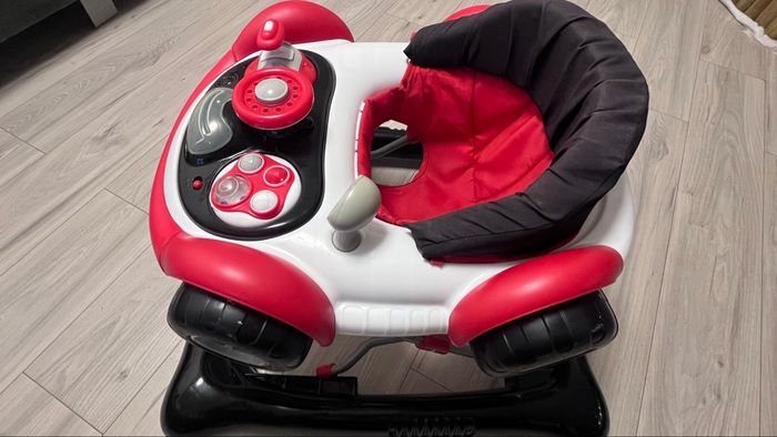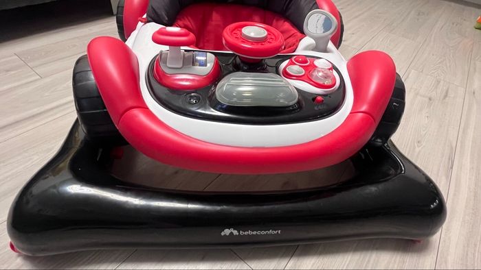 Trotteur Bébé Confort au design Voiture. Coloris rouge, noir et blanc 🏎🏎45€🏎🏎 En très bon état. Propre, prêt à l’emploi. Très ludique avec tableau d’activités (volant, boutons, sons/lumières – à piles), idéal pour stimuler bébé tout en l’aidant à faire ses premiers déplacements en sécurité. Assise confortable et dossier rembourré. 3 positions réglable auteur assise. Facilement pliable pour le rangement. NEUF 76Euros