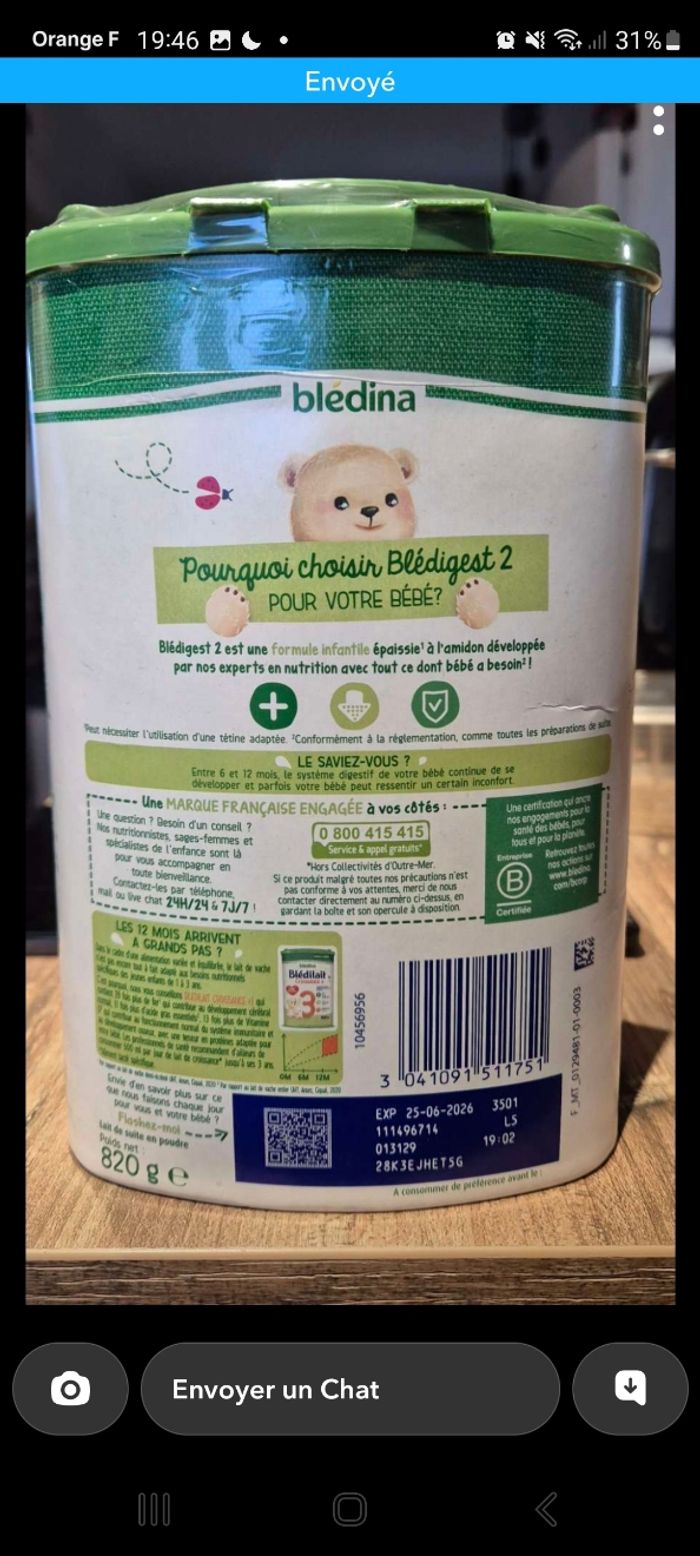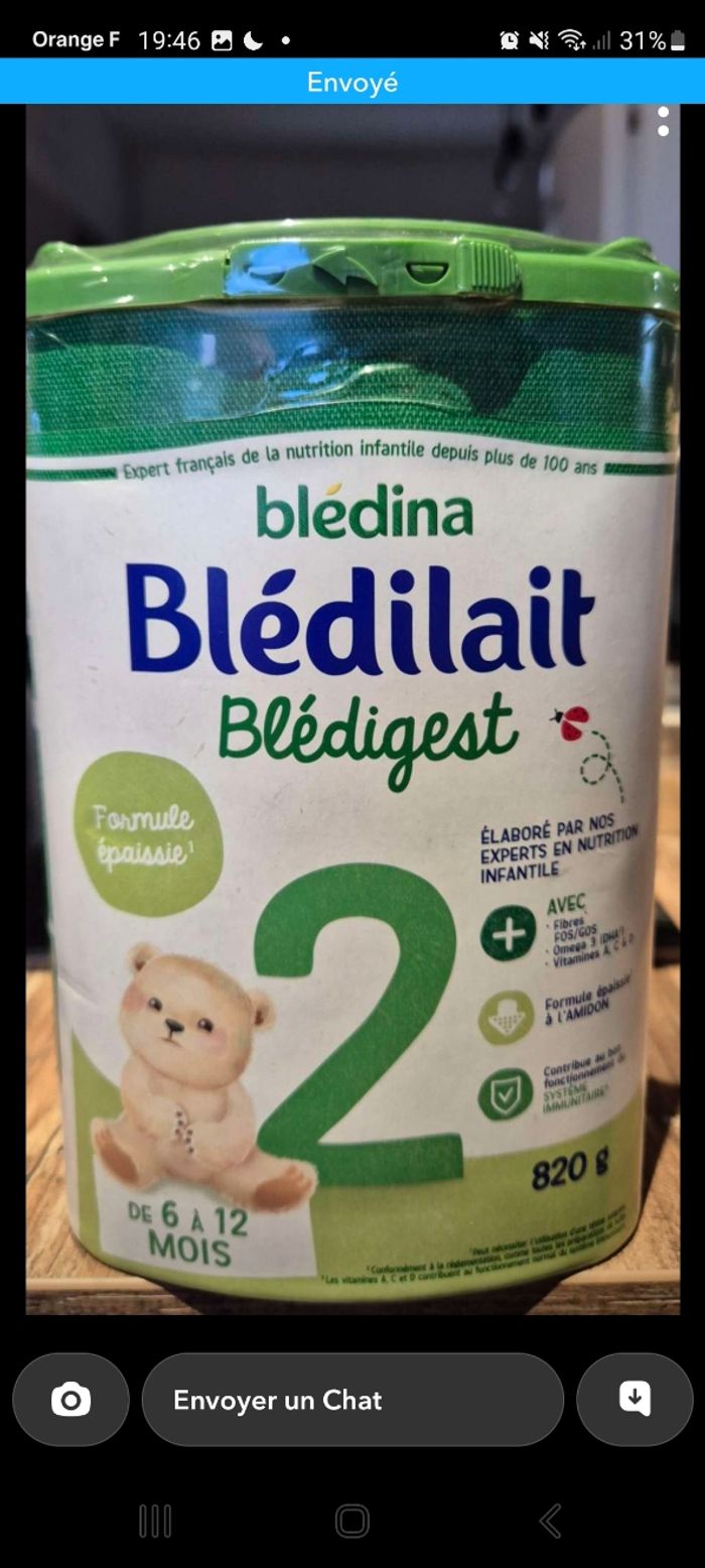 Une boîte de lait Bledigest 2ème âge neuf