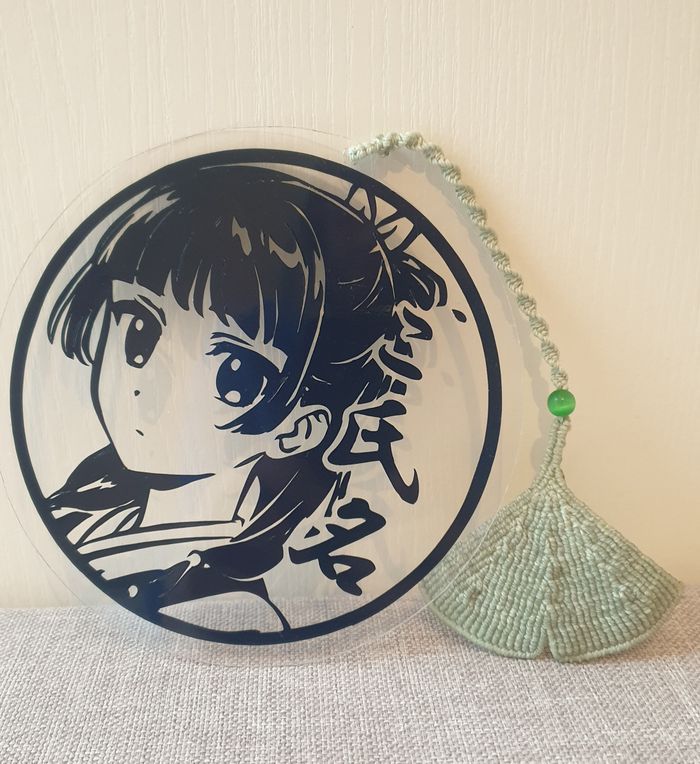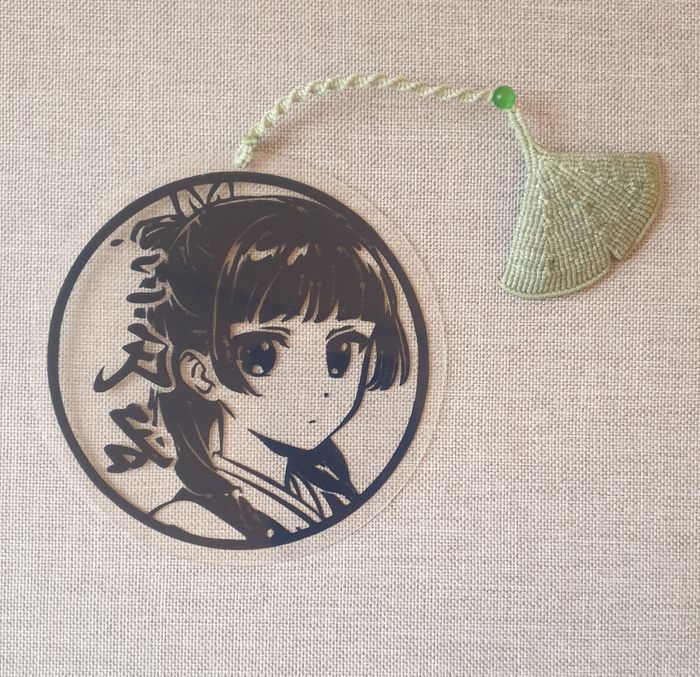 Marque-Page fait main en plexiglass, vinyle permanent fait avec la Cricut Joy et macramé tissé main. dimension 9.5 cm de diamètre