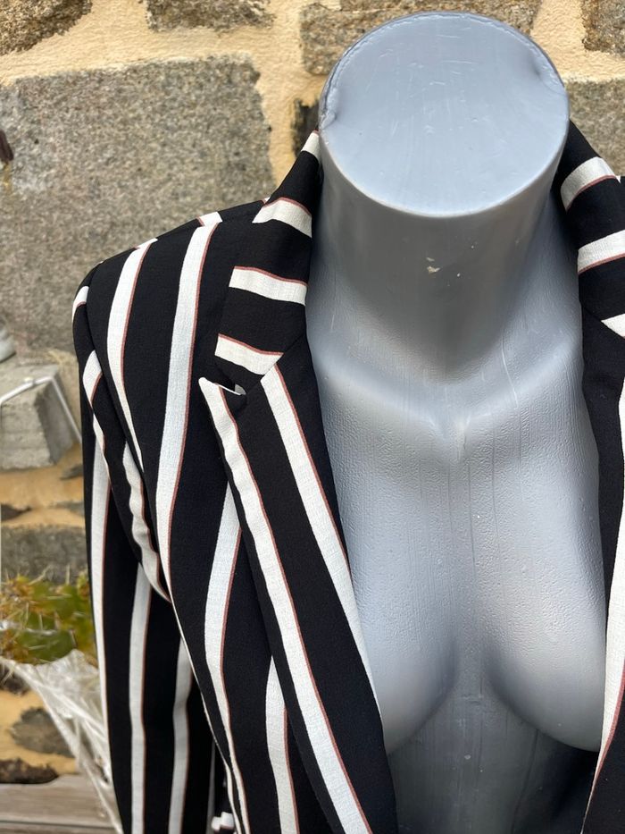 Veste de blazer rayée noir blanche et marron - Only  - photo numéro 1