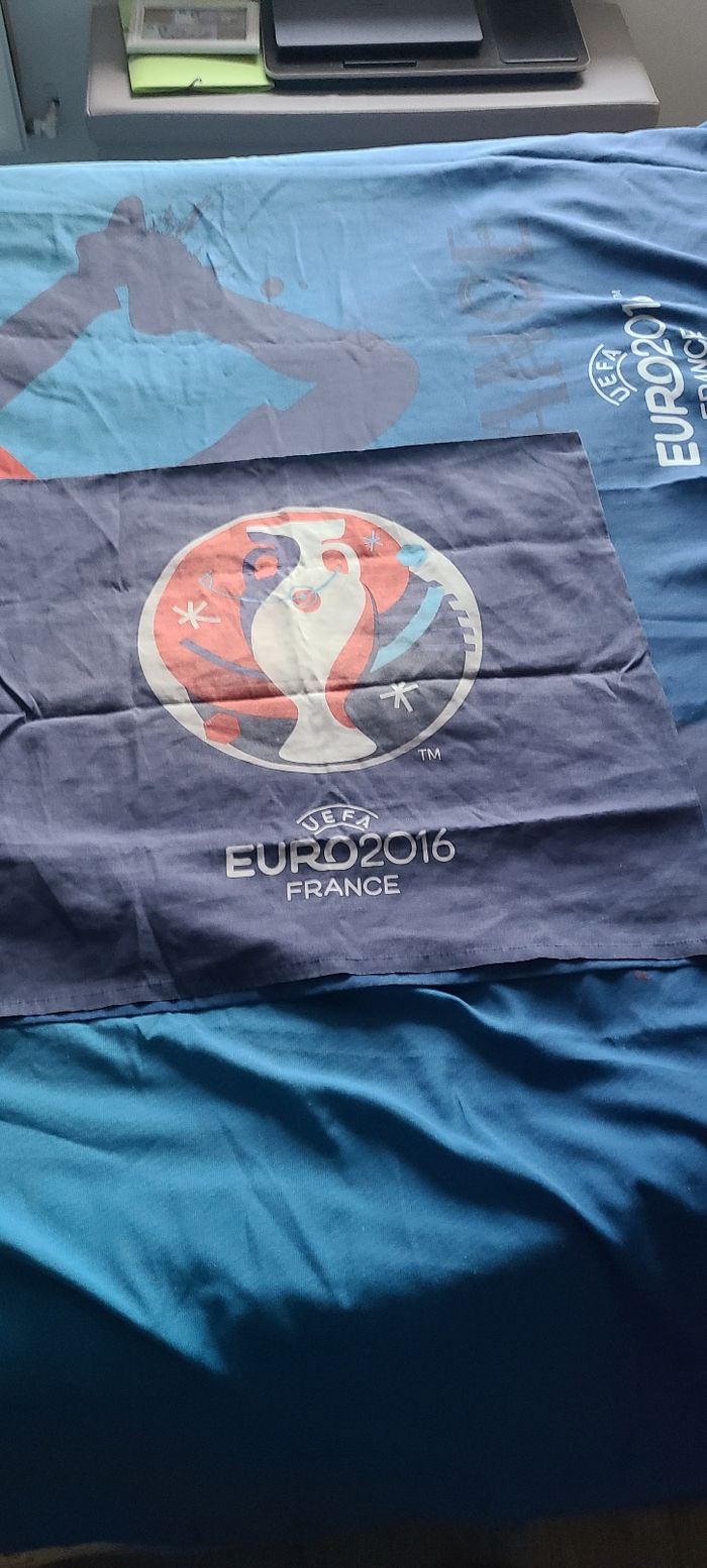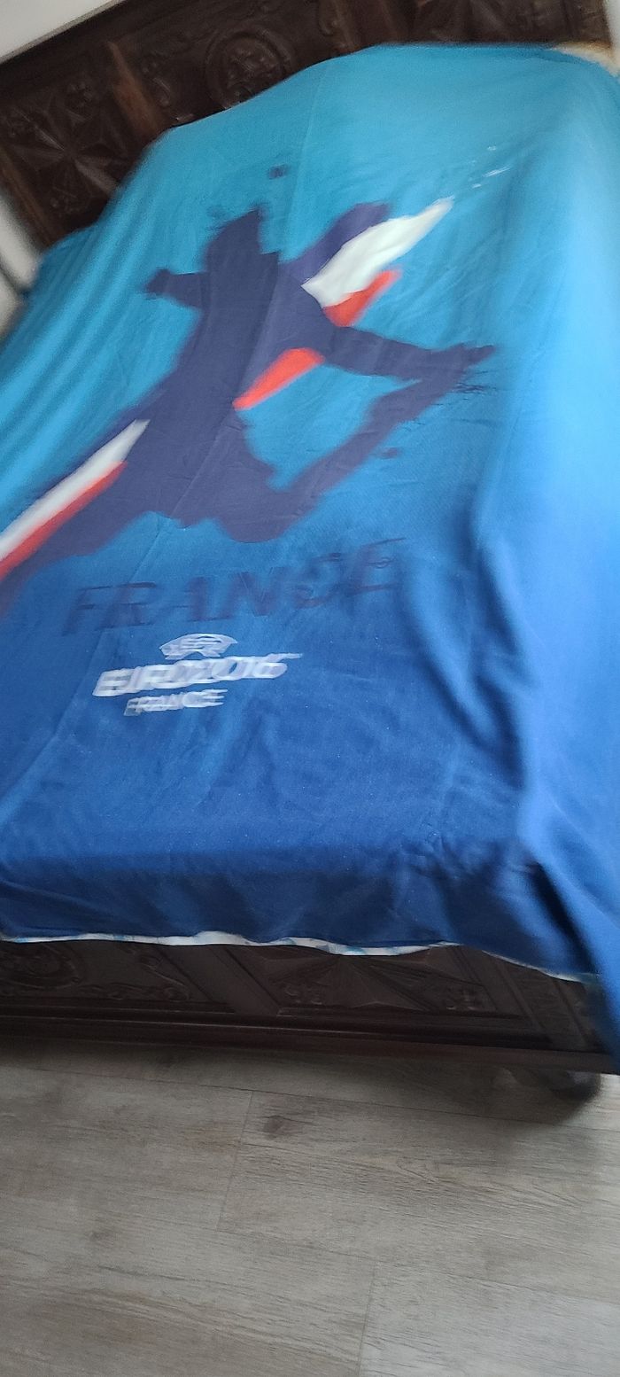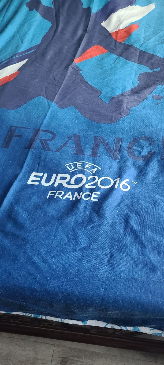 Vend parure de lit euro 2016 2 personnes bon état comprenant une housse de couette un drap housse les élastiques ne tiennent plus sur les côtés ça se répare une taie d'oreiller légèrement délavé cause plusieurs lavage Je vend plusieurs articles hiver adultes enfants vêtements chaussures autres dans mon dressing