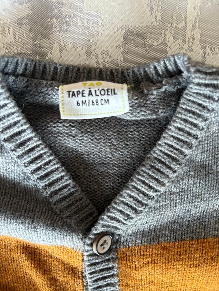 Gilet bébé garçon TAO – 6 mois – Gris/marron & bleu marine - photo numéro 1