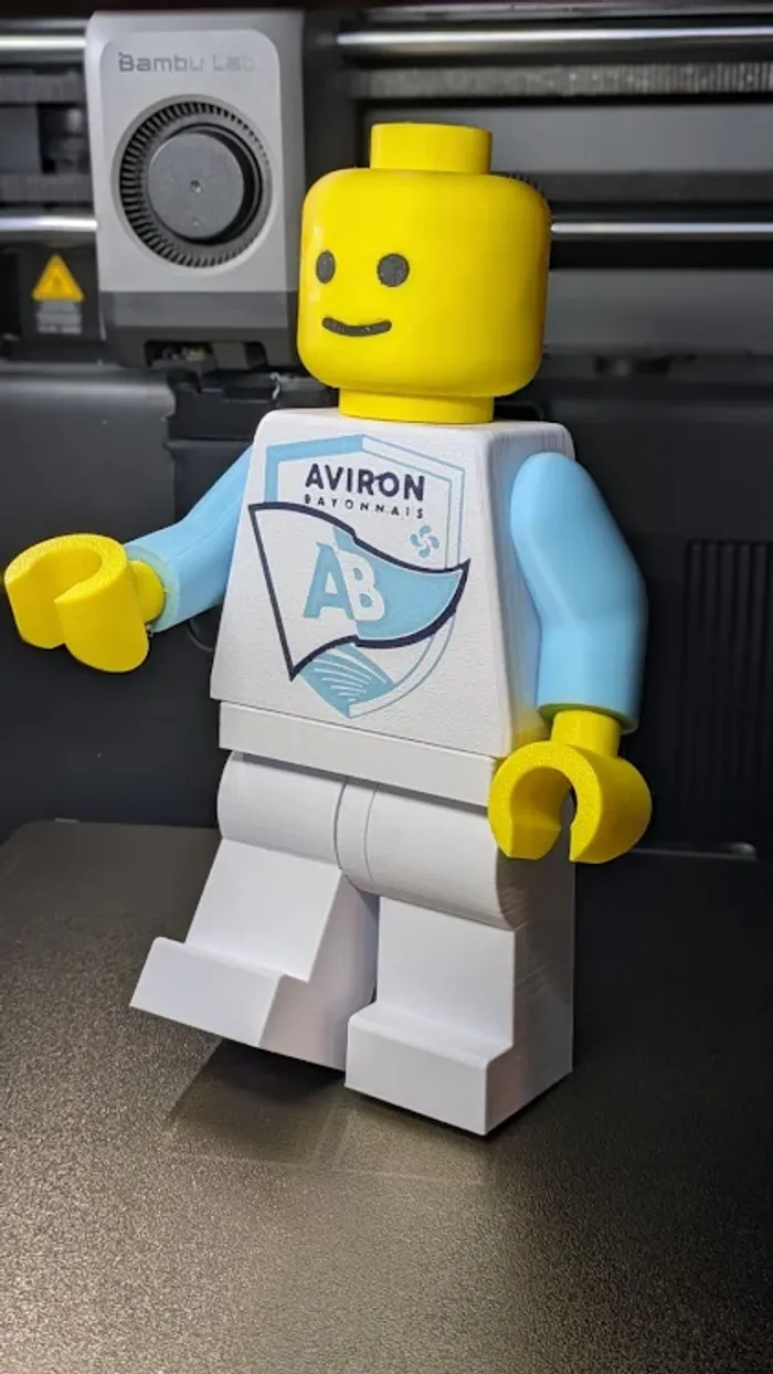 Mettez la main sur une véritable petite pépite : une figurine façon brique aux couleurs de l’Aviron Bayonnais ! 💙🤍 Un must-have pour tout supporter, collectionneur… ou simple amoureux du rugby basque 🏉😉 ✨ Caractéristiques : • Design exclusif : tête et mains jaunes, bras bleu ciel, pieds blancs… et surtout un buste qui affiche fièrement le logo officiel de l’Aviron Bayonnais ! • Fabrication artisanale : réalisée avec soin par Hinata3D, pour un rendu propre et plein de détails. • Format idéal : environ 20 cm — parfaite pour trôner sur une étagère, un bureau ou au milieu de votre collection 🧱✨ Que vous soyez un passionné de rugby, un collectionneur de figurines façon briques, ou en quête d’un cadeau qui fera mouche pour un fan du club, cette création est faite pour vous ! Une pièce rare, pleine de charme, qui ne laissera personne indifférent 😍 📦 Envoi rapide et soigné.