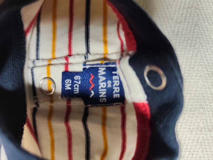 Vends un ensemble très mignon et de superbe qualité de la marque Terre de Marins La Salopette : En coton souple bleu marine. Les bretelles sont réglable. Le T-shirt : Assorti, avec des détails rappelant l'univers marin. Le confort : Matière très douce et résistante, idéale pour que bébé bouge librement tout en étant bien habillé. ✅ État : Impeccable, couleurs bien préservées. ✅ Marque : Terre de Marins