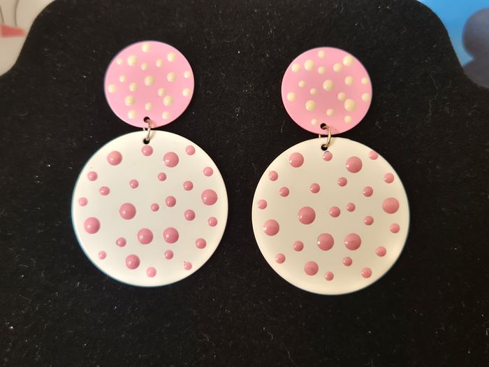Boucles d'oreilles fantaisie roses & blanches - photo numéro 2