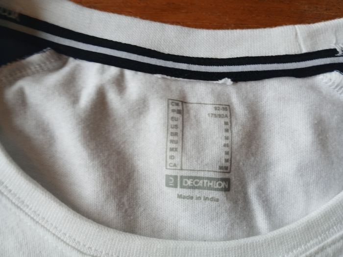 T-shirt blanc et manches courtes bleu marine. Marque Decathlon Taille M Très bon état