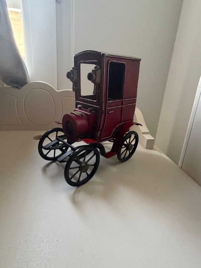 Automobile Vintage Artisanale en Métal – Rouge Cramoisi Rustique Décapotable - photo numéro 1