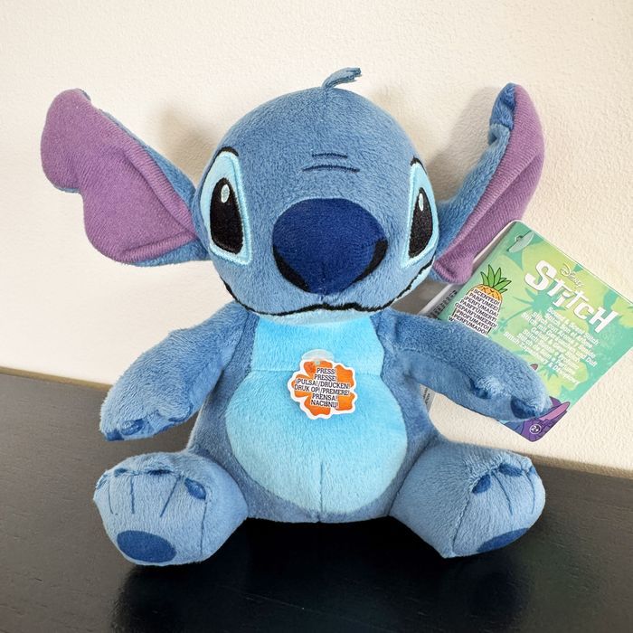 Superbe peluche de Stitch, parfumée à l'ananas et avec effets sonores ! Il faut appuyer sur son ventre pour que Stitch émette ses sons. Elle est neuve, authentique et avec étiquettes. EAN : 886144308680 #stitch #peluchestitch #disney #stitchinteractif #liloandstitch