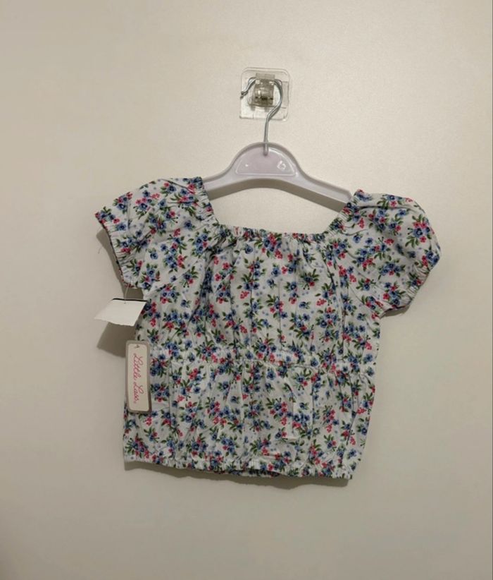 Blouse manche courte fleurie très élastique avec ptit bandeau