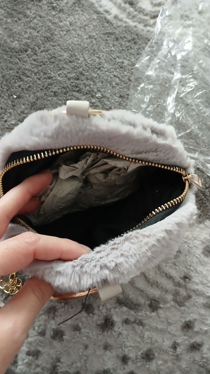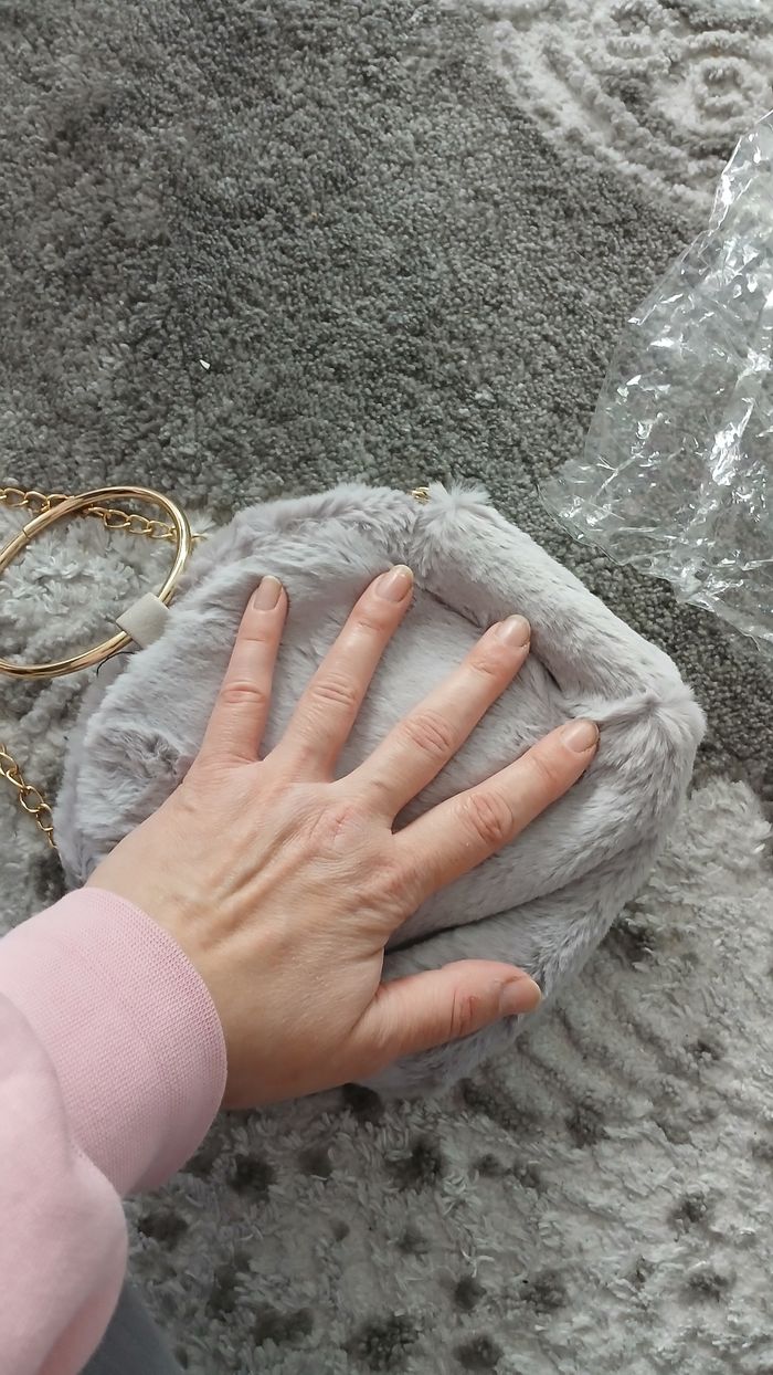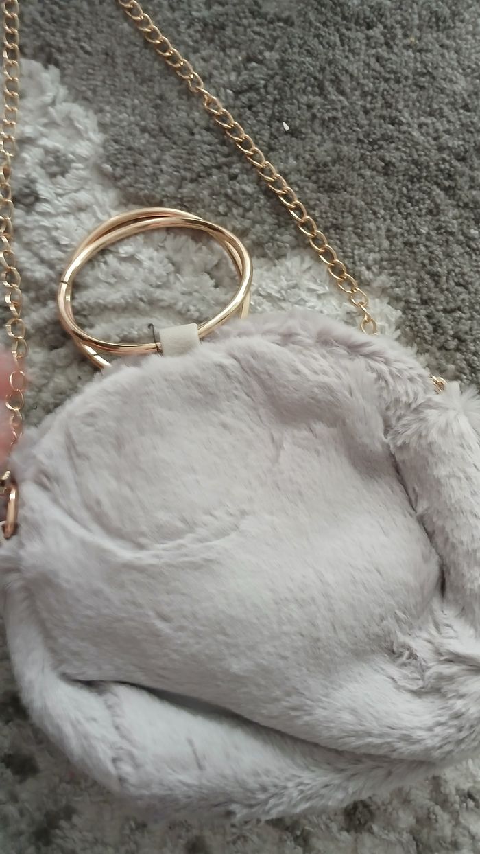 Petit sac rond neuf en fausse fourrure gris