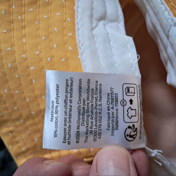 Bob jaune motif blanc Mcdonald's Taille unique Poids : 80 grammes Neuf, jamais porté