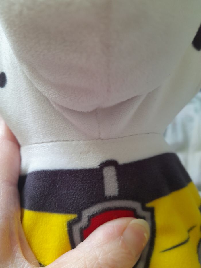 Grande peluche chien Marcus de la Pat patrouille manque un peu de rembourrage au niveau des pattes ne gêne pas