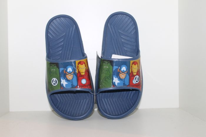 claquettes avengers bleue pointure 33/34 neuves avec étiquettes,idéal plage piscine ou pour l'été et aussi à la maison. marque marvel avengers réf 2273 n'hésitez pas à faire un lot. #mules #claquettes #avengers #marvel