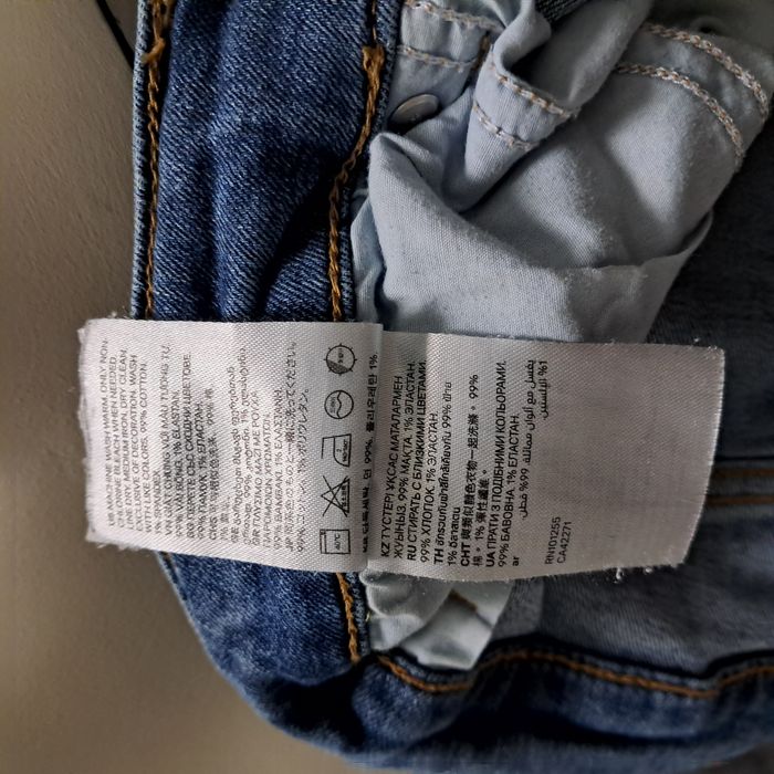 Jeans slim bleu H&M 4 poches +1 petite 1 bouton + fermeture éclair Taille 40 Mesures à plat Longueur : 98 cm Taille : 36 cm Taille à l’entrejambe : 28 cm Entrejambe au bas : 70 cm Poids : 460 grammes Matière : 99% coton 1% élasthanne Très bon état