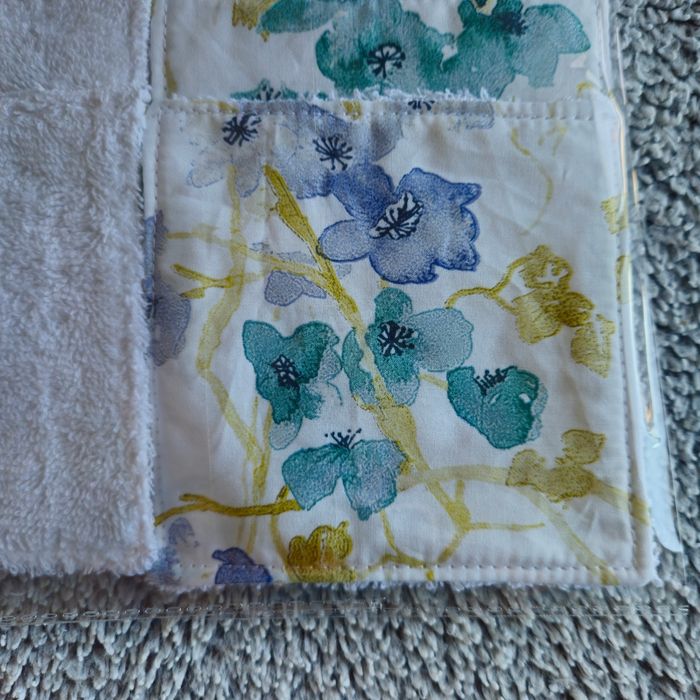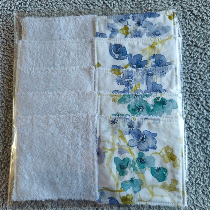 Lot 10 lingettes double face un côté tissu 100%coton motif fleuri et un côté éponge de coton blanc lavables jusqu'à 60 degrés Taille 12x12 cm Neufs jamais utilisés Achetez en lots réduction automatique à partir de 3 articles
