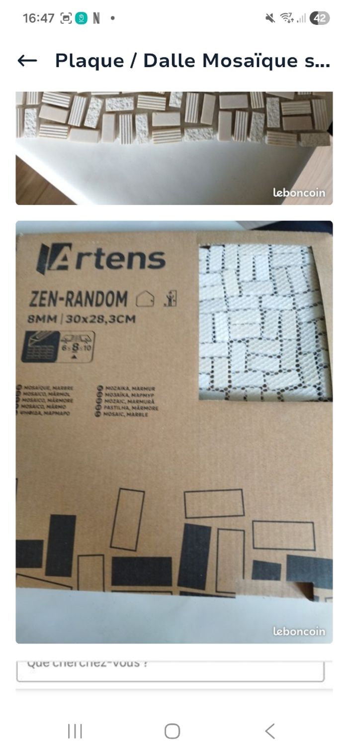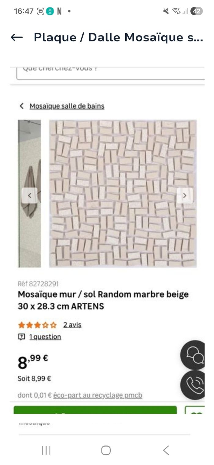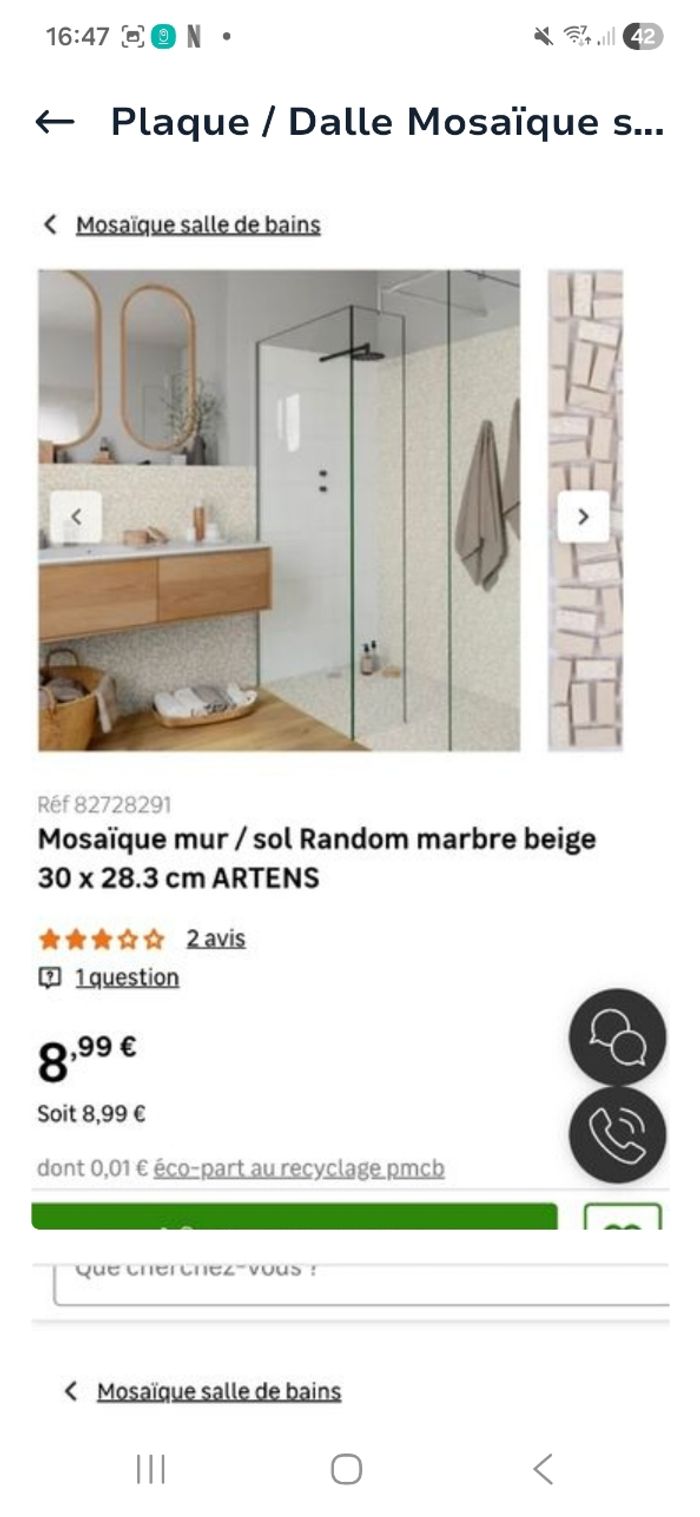 Dalle / carrelage salle de bain . Neuves ! 3 euros la plaque. ( 8.99 euros en magasin). Il y en a 70 en tout. Possibilité lot, a récupérer du place . Bourneville 27500 ou yvetot 76190