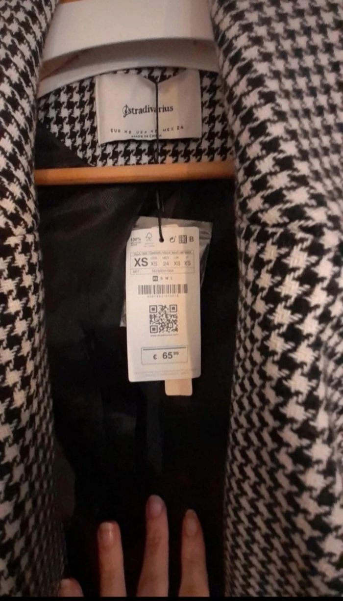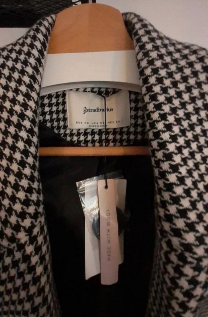 Manteau pied de poule noir et blanc de la marque stradivarius neuf avec étiquettes XS mais coupe loose