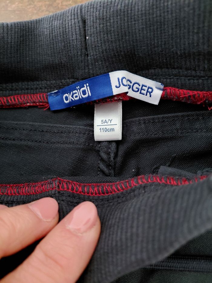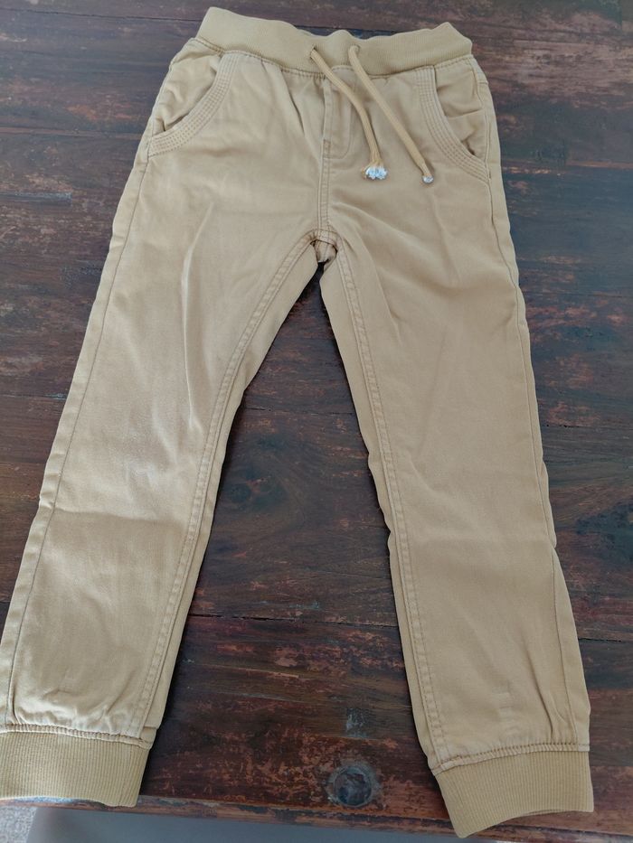 En parfait état, sauf le moutarde uniquement l'extrémité du cordon abîmée. Jogpants Okaidi en 5 ans ajustables à la taille. Polo Creeks 6 ans.
