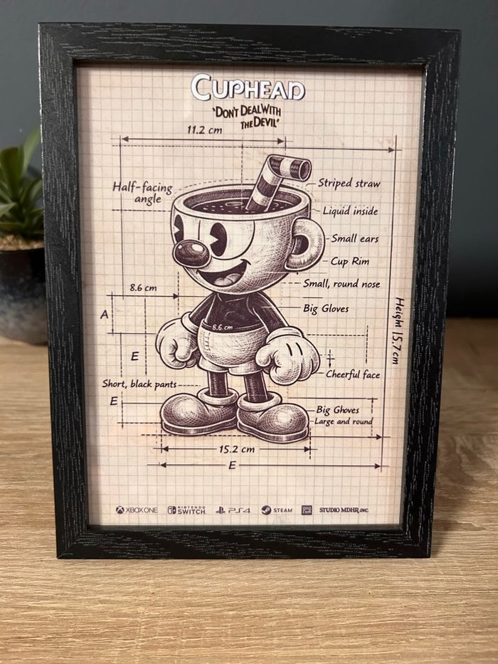 Cadre Cuphead – Croquis technique – Style rétro – 13x18 cm