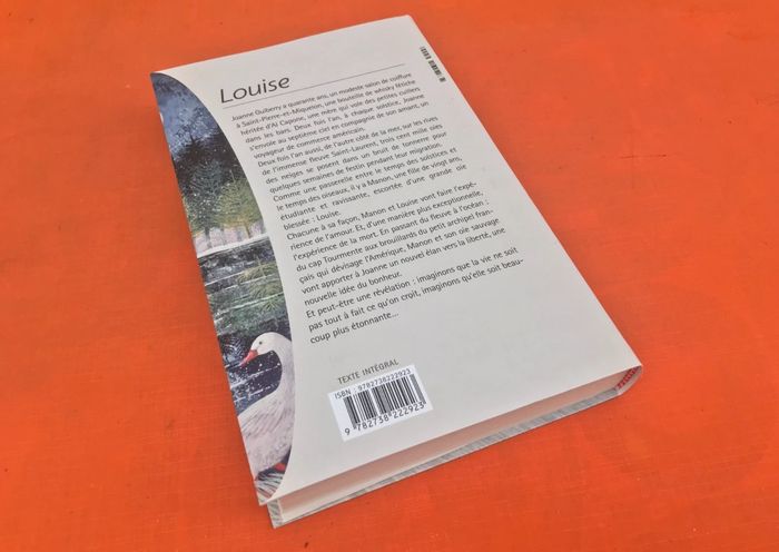 Didier Decoin Louise (1998) 377 pages Succés du Livre Editions (230x150x30)mm Poids : 465grs Joanne Guiberry a quarante ans, un modeste salon de coiffure à Saint-Pierre-et-Miquelon, une bouteille de whisky fétiche héritée d'Al Capone, une mère qui vole des petites cuillers dans les bars. Deux fois l'an, à chaque solstice, Joanne s'envole au septième ciel en compagnie de son amant, un voyageur de commerce américain. Deux fois l'an aussi, de l'autre côté de la mer, sur les rives de l'immense fleuve Saint-Laurent, trois cent mille oies des neiges se posent dans un bruit de tonnerre pour quelques semaines de festin pendant leur migration. Comme une passerelle entre le temps des solstices et le temps des oiseaux, il y a Manon, une fille de vingt ans, étudiante et ravissante, escortée d'une grande oie blessée : Louise. Chacune à sa façon, Manon et Louise vont faire l'expérience de l'amour...