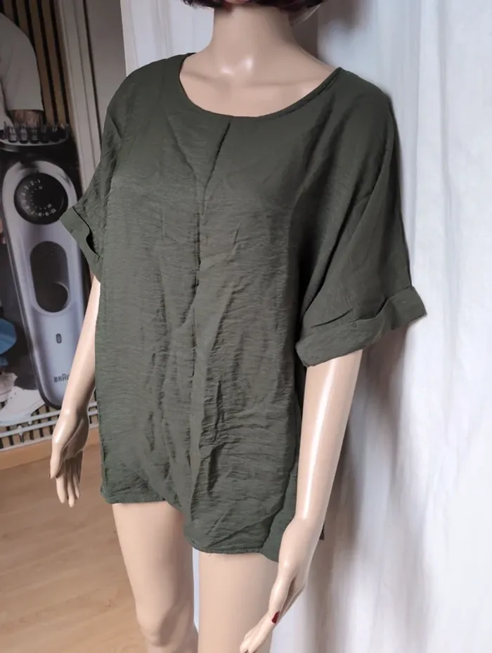 T-shirt à manches courtes, simple et confortable, idéal pour le quotidien. Sa couleur vert foncé est facile à assortir et convient parfaitement à un look casual ou plus habillé selon les accessoires. ✨ Détails du produit : • Marque : Yessica • Taille : 48 France (#vavaneva48) • Couleur : vert foncé • Coupe agréable et facile à porter • Parfait avec un jean, un pantalon ou une jupe 📦 Envoi rapide et soigné ❌ Maison non-fumeur #tshirt #manchescourtes #femme #Yessica #vertfoncé #mode #grandetaille #vavaneva48 #occasion #secondevie