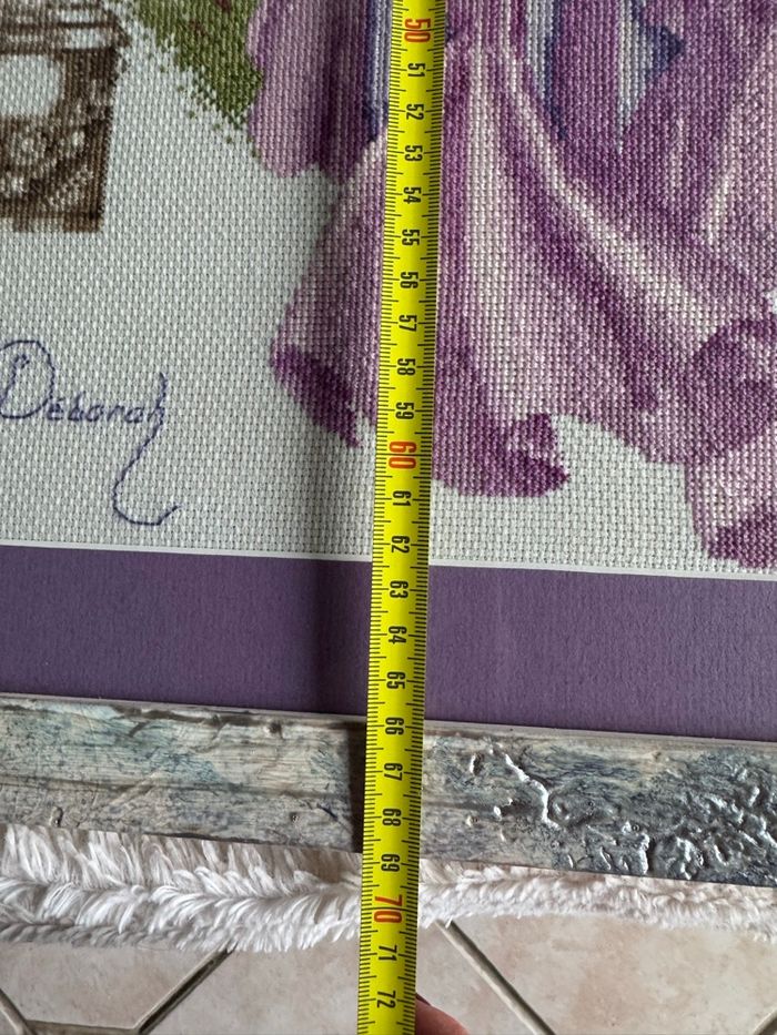 Je vends ce magnifique cadre point de croix représentant une élégante dame dans une robe violette. - Type de produit : Tableau - Style : Fantaisie / Romantique - Matière : Bois - Couleur : Violet - Artiste : Deborah Des heures et des heures de travail pour la réalisation de cette ouvrage original, élégant et romantique, encadrement professionnel. Largeur : 45 cm Longueur : 69 cm État neuf N'hésitez pas à me contacter pour plus d'informations ou de photos.