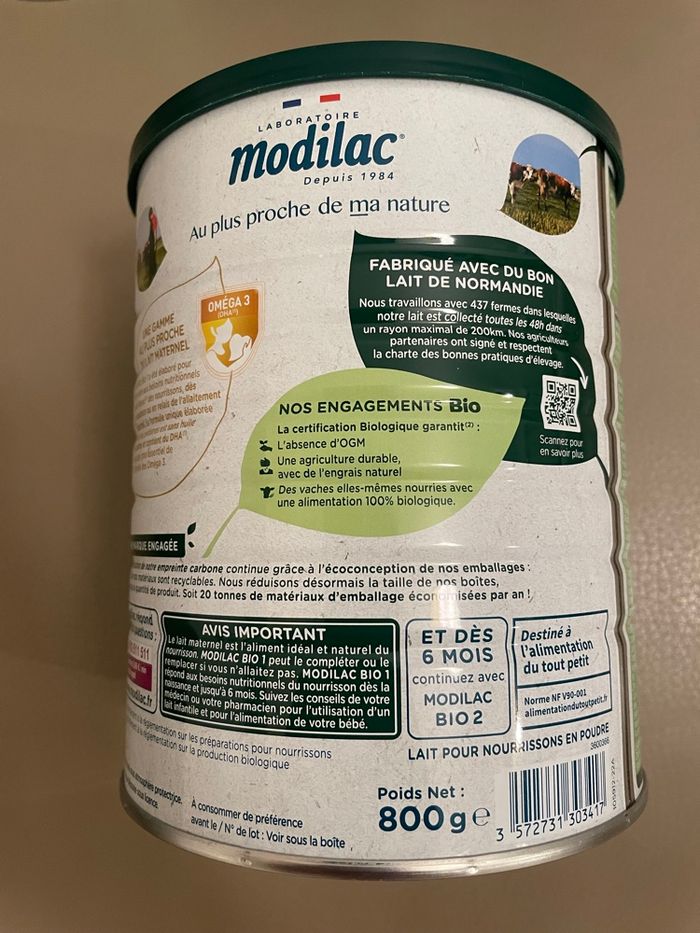 PRIX NON NÉGOCIABLE Lot de 6 boîtes de lait infantile Modilac BIO 1er âge 800g DDM 18/10/2027 Neuf avec film intact