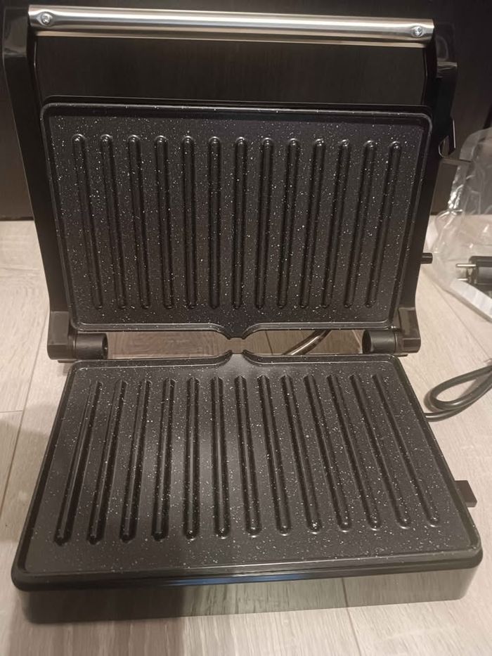 Vend grill pour panini, sandwich : chauffe à 180°, plaques céramique sans BPA, poignée froide. Puissant et économique. Neuf jamais servi Fonctions 3-en-1, nettoyage facile.